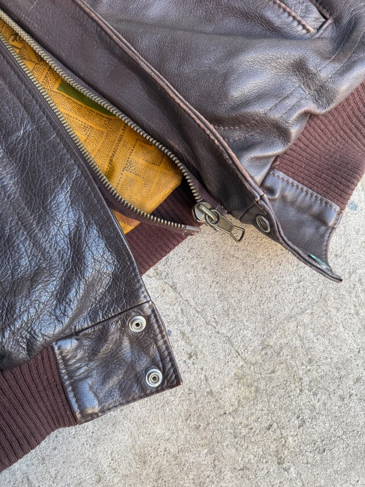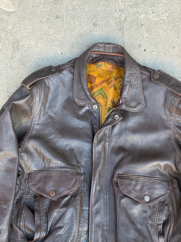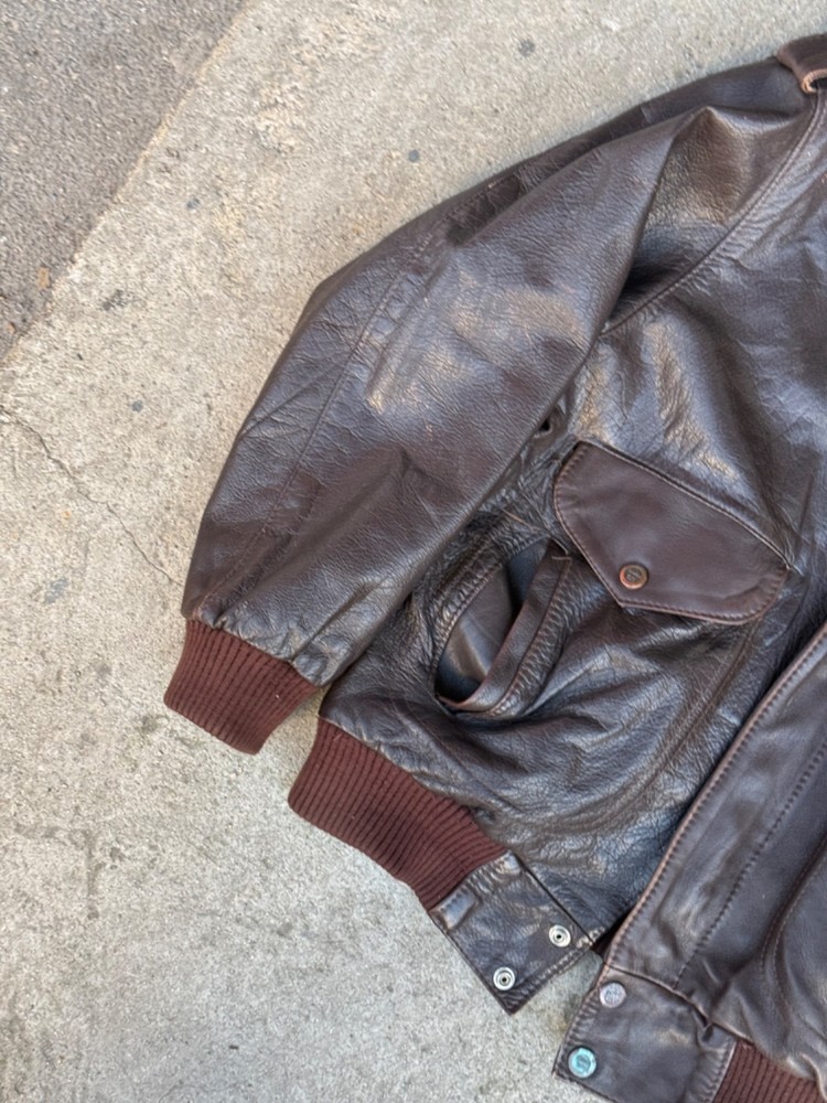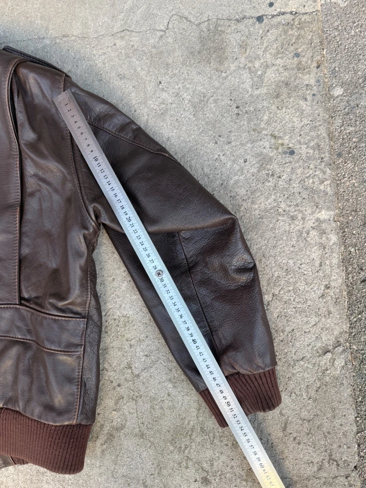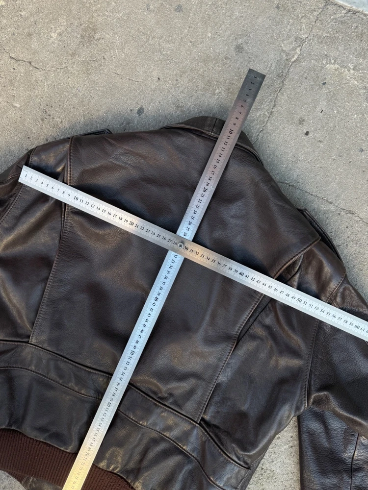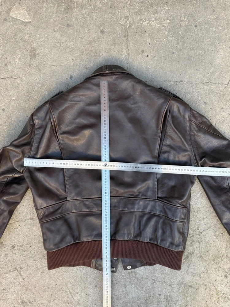 eBay Listing Template - Used Clothing Genuine Leather Made In Italy Brown Bomber Aviator Jacket Size M The description of this item has been automatically translated. If you have any questions, please feel free to contact us. GLOBAL CLOTHING SHOP Product Details Head measurements: MEASUREMENTS OF THE GARMENT VISIBLE IN THE PHOTO Cut: M Conditions: EXCELLENT OVERALL CONDITION - DEFECTS DESCRIBED BELOW Product code: Product code Product Description Jacket in soft and buttery genuine leather in dark brown colour. Solid metal zipper closure. Made in Italy by hand. G-1 aviator model. Size M with precise measurements in the photo. In excellent overall condition, it has a small stitching on the right pocket and a stitching on the metal zipper which still works perfectly. Store Details Product In the product photos there is a graphic that represents the measurement method of the garments. Before purchasing we recommend that you follow the measurements shown in the description rather than referring to the size mentioned, as each item is unique and can come from different brands and styles and sizes can vary greatly. We are committed to processing orders as soon as possible and with all necessary precautions ensure that the product arrives in perfect condition. Normally orders received after 2.00pm on weekdays will be shipped the following day. Contacts You can contact us at any time via eBay messages if you have any questions, comments or product requests. We will reply you within 24 hours and do our best to help you! We encourage our customers to contact us with any questions or concerns! We would like to make sure that you are completely satisfied with your purchase. SAVE THE WORLD, SHOP VINTAGE In the product photos there is a graphic that represents the measurement method of the garments. Before purchasing we recommend that you follow the measurements shown in the description rather than referring to the size mentioned, as each item is unique and can come from different brands and styles and sizes can vary greatly. We are committed to processing orders as soon as possible and with all necessary precautions ensure that the product arrives in perfect condition. Normally orders received after 2.00pm on weekdays will be shipped the following day. You can contact us at any time via eBay messages if you have any questions, comments or product requests. We will reply you within 24 hours and do our best to help you! We encourage our customers to contact us with any que