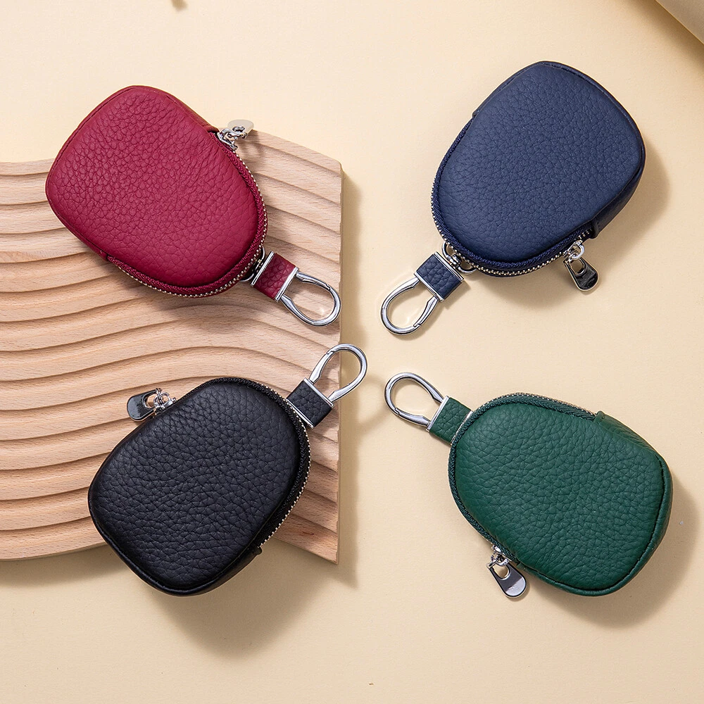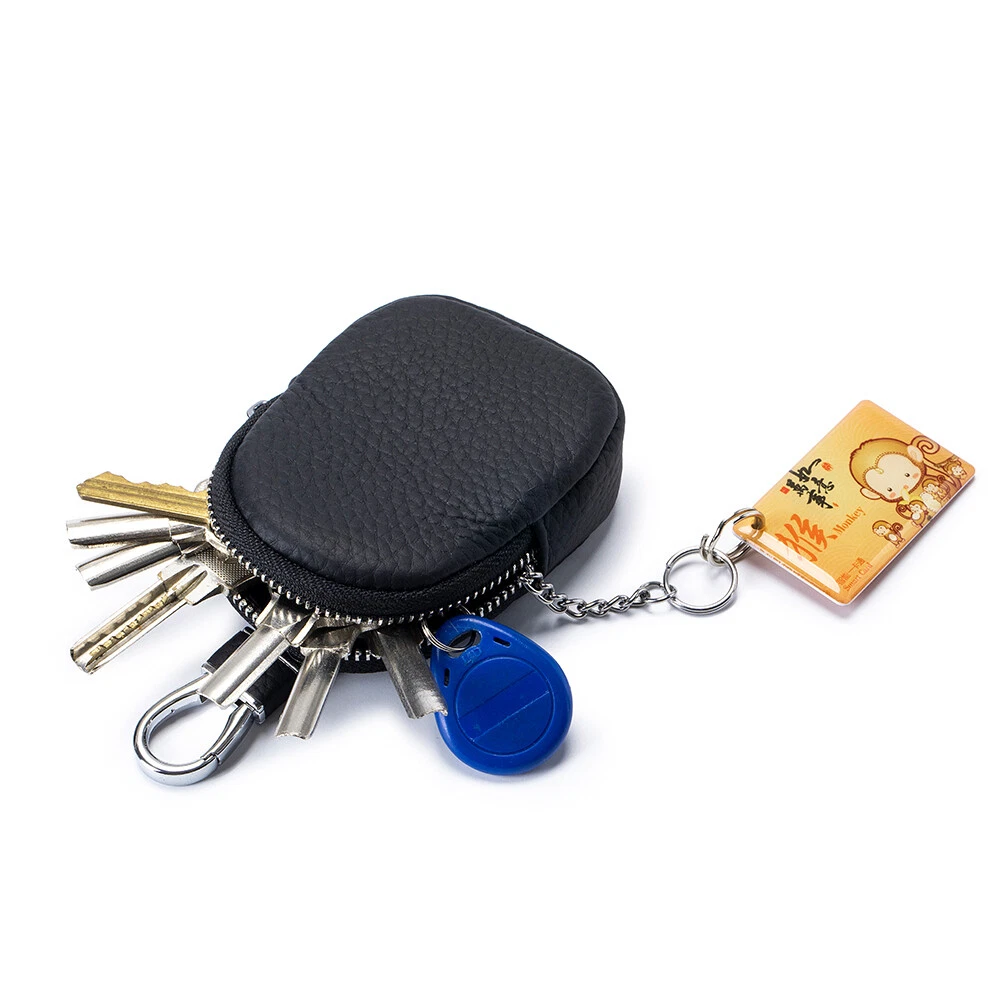 Genuine Leather Organizer Wallet Car Key Holder Case Keychain Bag Zipper Pouch