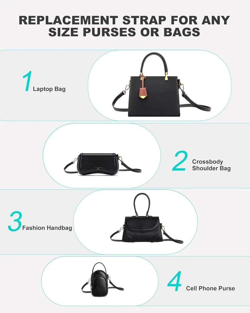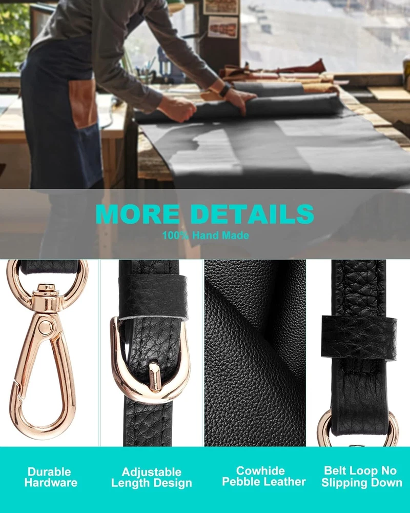 100% Leather Imported Genuine Leather: We use the refined cowhide pebble leather to craft this purse strap, ensuring it is soft, supple, and of genuine leather quality Suitable Size: This thin purse strap measures 0.47 inches in width and can be adjusted in length from 43 inches to 51 inches, making it compatible with a variety of commonly used crossbody bags Hand Made: This replacement strap for purses is made by our experienced team, ensuring that all production procedures adhere to the strict quality requirements Classy Design: This crossbody replacement strap is crafted with a focus on simplicity, which allows it to complement a wide range of purses and handbags effectively Durable Hardware: The strap's sturdy hardware supports the weight of luggage. Caution: Prolonged use with heavy bags may cause shoulder discomfort Product Description Purse Strap Purse Straps Replacement Crossbody Replacement Straps for Handbags Genuine Leather Genuine Leather: We use the refined cowhide pebble leather to craft this purse strap Suitable Size: This thin purse strap measures 0.47 inches in width and can be adjusted in length from 43 inches to 51 inches Hand Made: This replacement strap for purses is made by our experienced team, ensuring that all production procedures adhere to the strict quality requirements Classy Design: This crossbody replacement strap is crafted with a focus on simplicity, which allows it to complement a wide range of purses and handbags effectively