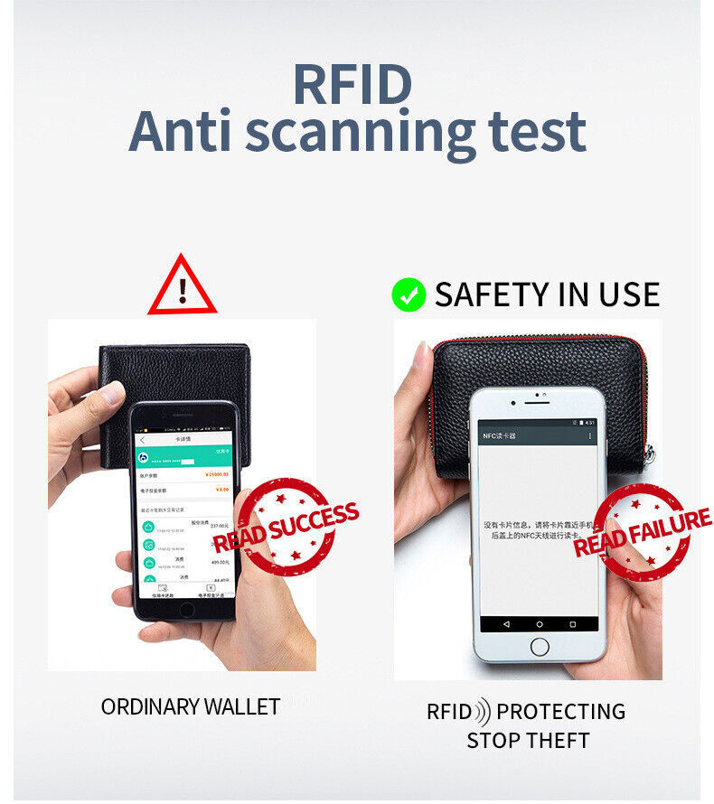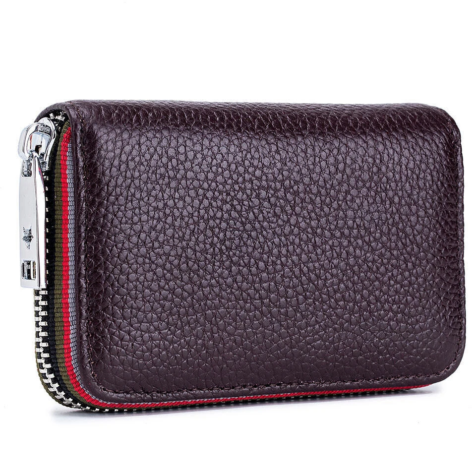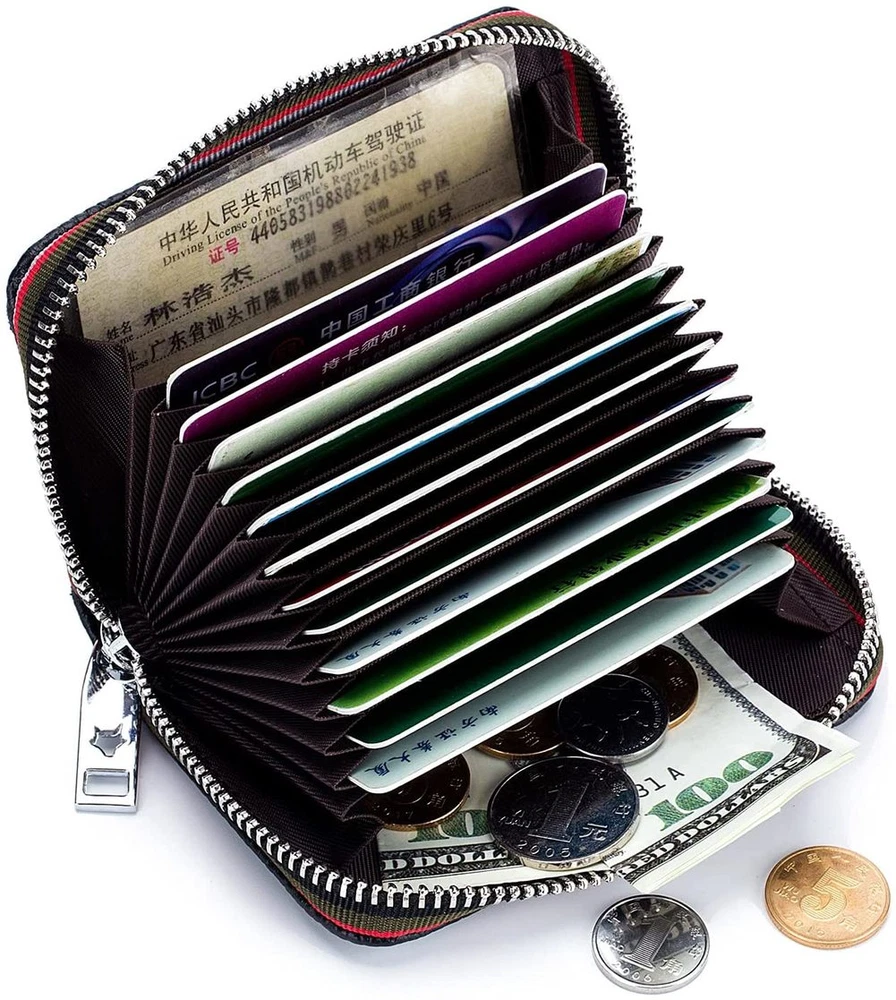 About this item Zipper closure.it is RFID protected for security 【Material】Genuine Leather,Fabric lining,accordion style wallets 【Dimensions】4.33"L x 2.95"W x 0.98"H,the little leather card case holds at least a dozen cards 【Multi-slots】the card wallet has 12 card slots with 2 larger spaces for bills, more cards or receipts 【RFID blocking layer】it is rfid blocking ,2 outer layers RFID blocking materials ,Be Safe and Protected from Electronic Pick Pocketing 【Service】We are committed to creating exquisite services, any questions, please contact us , we will solve the problem for you in 24 hours