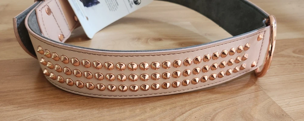 Brand new with tags. XXL genuine leather studded dog collar. Buckle. Pink with rose gold hardware