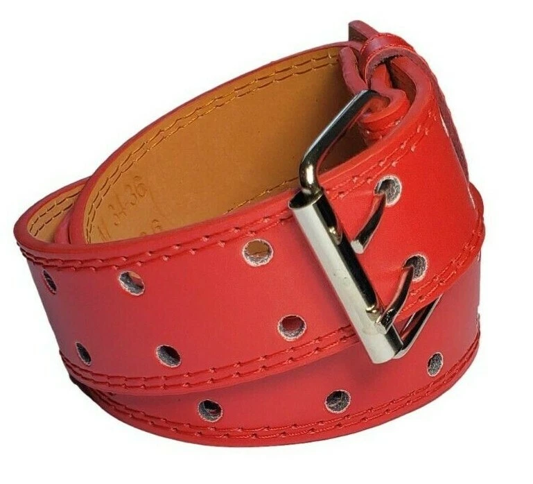 Unisex Men's Women's Genuine Leather Two Prong Double Row Holes Casual Plain Red Belt Color: Red Belt Buckle: Silver Tone Material: Genuine Leather Belt Width: 1.5" Wide (4cm) Condition: Brand New With Tags SIZES S-Small (30-32") (76-81cm) (Actual Belt Length From Buckle To End Is 37.5") M-Medium (34-36") (86-91cm) (Actual Belt Length From Buckle To End Is 41.5") L-Large (38-40") (97-102cm) (Actual Belt Length From Buckle To End Is 45.5") XL-Extra Large (42-44") (107-112cm) (Actual Belt Length From Buckle To End Is 49") All Orders Ship Within 24 Hours Of Payment Free USPS Tracking Number With Purchase