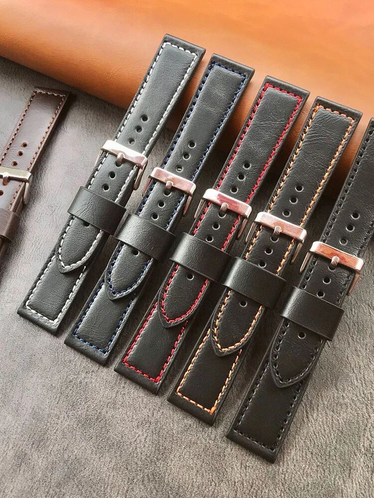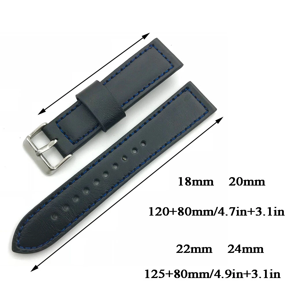 Watch Part Wristwatch Straps Watch Accessories Watchband Leather Watch Strap Welcome To Our Store ❤ 100% Good Service ❤ Fast Free Shipping ❤ 30 Days Return ❤ 100% High Quality Package:1 pcs Watchband(Other Accessories are not included) Material:leather Colors:white line,black line,red line,blue line,orange line,brown Size:width 18/20mm,length 120+80mm/4.7+3.1in width 22/24mm,length 125+80mm/4.9+3.1in Attentions: 1.The Real Object May Exist Slightly Colors Differences Compared To Images As Different Computers Display.Caution If Minding,Thanks. 2.There Might Be A Manual Measuring 1-3 cm Error.Sorry For Any Inconvenience. 3.Please Prevail On Real Item, Model Images For Reference Only. 4.Attention!!!Please check the size chart carefully before placing the order.