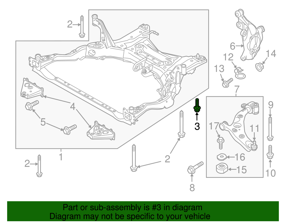 PATRICK MAZDA Genuine Mazda Engine Cradle Rear Bolt 9YA0-21-449 Part can be found as # 3 in the diagram above Genuine Mazda Parts Product Description 2.5L turbo. 2.2L diesel. Specifications Brand Mazda Manufacturer Part Number 9YA0-21-449 SKU 9YA0-21-449 Product Genuine Mazda Engine Cradle Rear Bolt 9YA0-21-449 ONLY PART REFERENCE #3 ON THE DIAGRAM IS INCLUDED Terms and Conditions Thank you for shopping with us. Please find our policies below. If you have any other questions, please don't hesitate to contact us. Shipping Terms In stock orders ship within 24 hours. Weekend orders will be processed the next business day. If a part is not in stock and must be ordered from the manufacturer, it usually takes 2-6 days to arrive to us and will be promptly shipped to you. Most of the orders are shipped complete within 2-6 business days. Oversized shipments will be additional; you will be contacted prior to shipping for approval. We cannot guarantee transit times for ground and oversize orders. Shipping Carrier substitutions may be made at our determination in an attempt to reduce shipping cost to the customer. We do not ship internationally. In the unlikely event that a part has been placed on backorder or discontinued, we will do our best to try and find one for you as quickly as possible. We do not ship COD orders. Return Policy Contact us to arrange for any returns. A copy of the invoice will need to be included with the return. Parts must be resaleable and in the original packaging. We cannot take back used parts. We cannot take back installed or tried parts. Electrical parts are not returnable. We do reserve the right to refuse and return any parts we find have been installed, are used or do not meet the above criteria. Return request need to be within 30 days of receipt. Cancellation Policy An order or a portion of an order may be cancelled up until the time it is shipped and no longer in our possession. Home • Newsletter Signup • Contact Us Copyright © 2025 PATRICK MAZDA , All rights reserved. Solution by RevolutionParts, Inc. :: Design by OCDesignsOnline