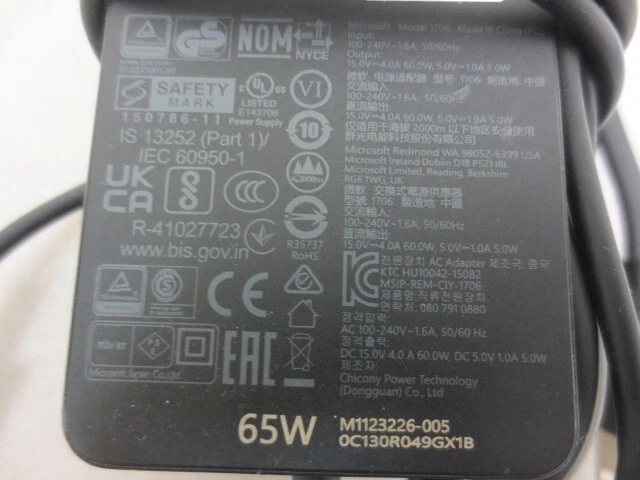 Genuine Microsoft 65W AC Adapter Charger 1706 Surface Pro 3 4 5 6 7 Series Come with a 30 day warranty. The item which shown on the photos is actual item. You will receive what you see on the pictures.
