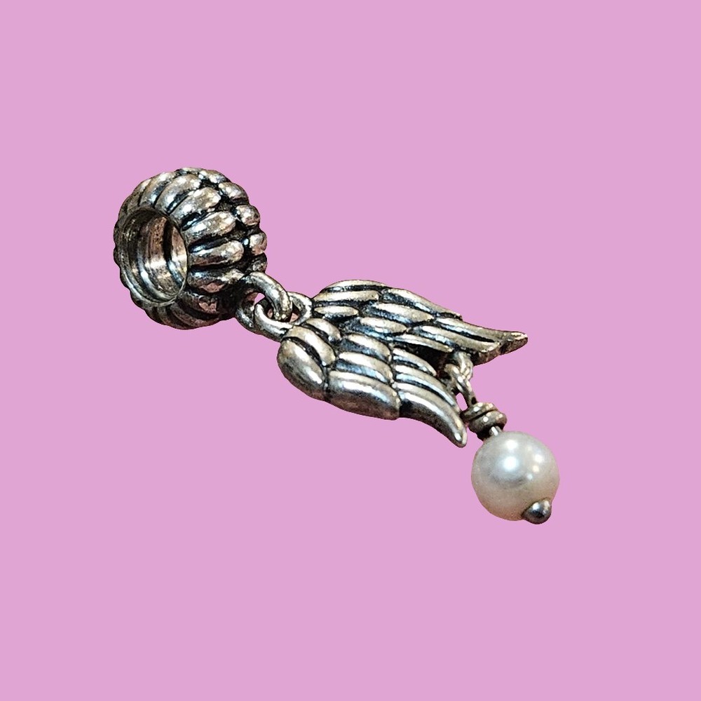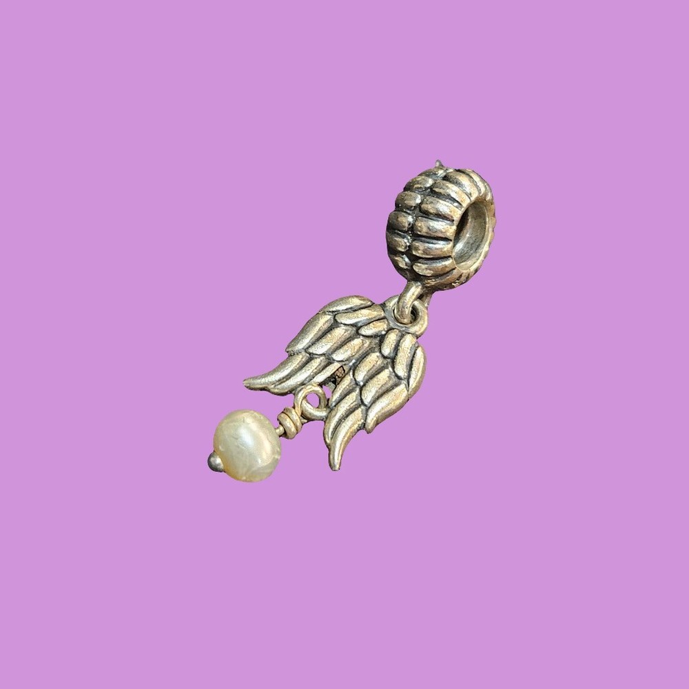 This is a genuine PANDORA charm featuring angel wings and a white pearl . Made of sterling silver. Pre owned. Great condition. This will arrive in a velvet pouch.