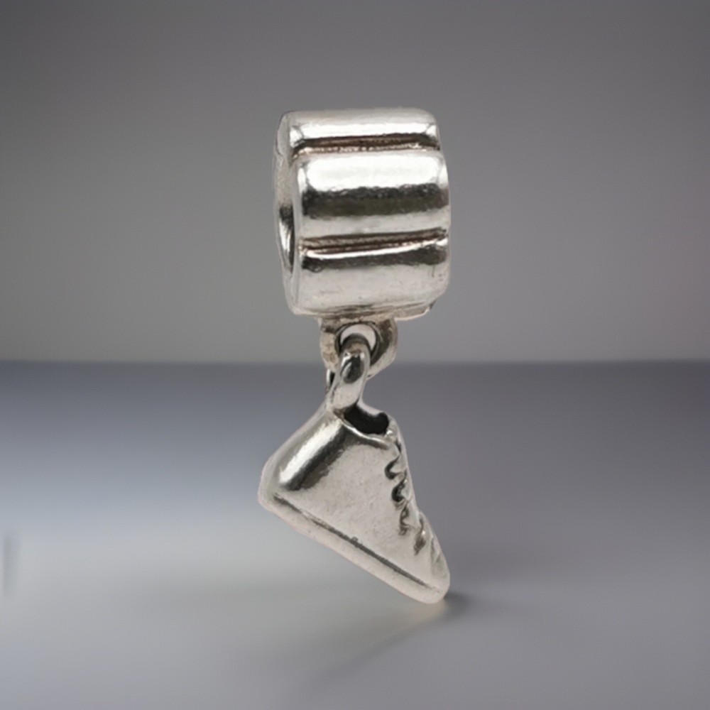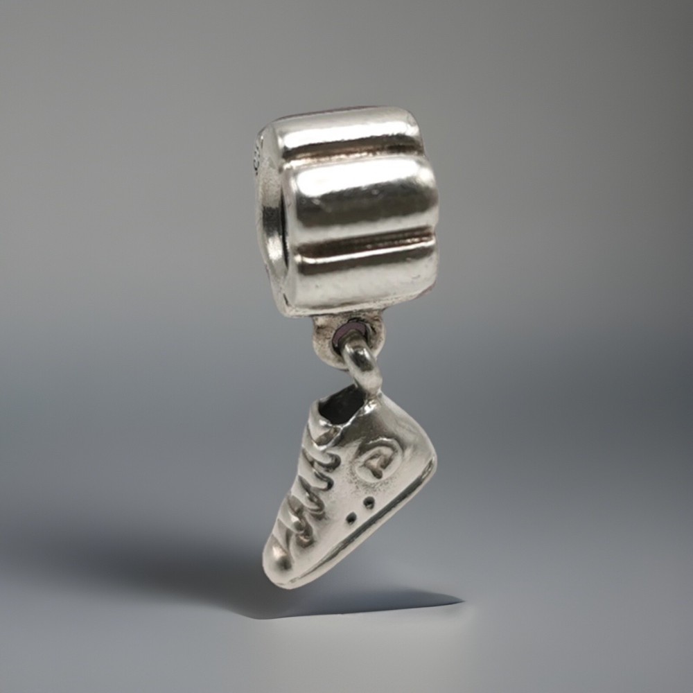 This Genuine Pandora Silver Hi-top Sneaker Trainer Dangle Charm is a vintage piece made of sterling silver with a 925 metal purity. The charm is stackable and signed by the brand PANDORA. It is perfect for various occasions such as Mother's Day, engagement, Christmas, graduation, wedding, anniversary, birthday, and Valentine's Day. This unique charm features a hi-top sneaker design that can add a touch of style to any charm bracelet or necklace.”No original box/pouch”