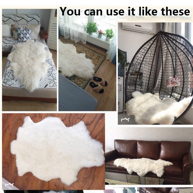 This item is for one single sheepskin only, not include other accessories. Genuine Sheepskin Fluffy Fur Rug Windward Single 100% Natural Ivory Soft Fashion Size: 4 sizes 1# 65*100cm / 25.6*39.4in 2# 65*110cm / 25.6*43.3in 3# 70*115cm / 27.6*45.3in 4# 75*125cm / 29.5*49.2in Color: Ivory Material: sheepskin
