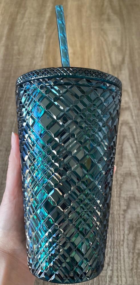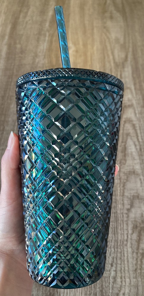 Genuine Starbucks 2021 Holiday Studded Jeweled Tumbler Blue Green 16oz. In good used conditon. There is a small chip near the bottom of the cup. See photos above.