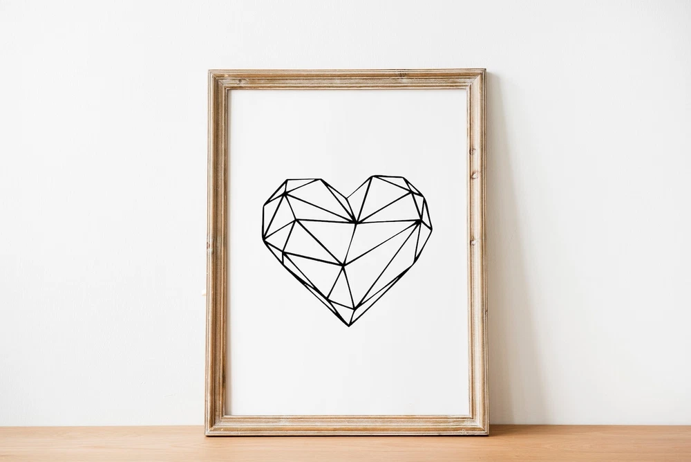 Geometric Heart Modern Art Minimalist Wall Art Heart Print Heart Minimal Bedroom Decor Heart Poster Gift For Her Material: Premium luster photo paper Print type: Inkjet printing One side printed + The finish provides the highest possible resolution and color saturation + Lasts up to 200 years in color and 400 years in black-and-white + Printed on high-quality resin-coated photo base paper medium + Posters can be hung with double-sided tape, tacks, or framed + Hand washing with a gentle cry cloth is recommended for extended durability I will hand select the best choice of paper for your chosen design to ensure top quality results for a beautiful, bright and luxurious print. All prints are sealed in cellophane slips for protection during transportation, and are shipped in a protective cardboard envelope.