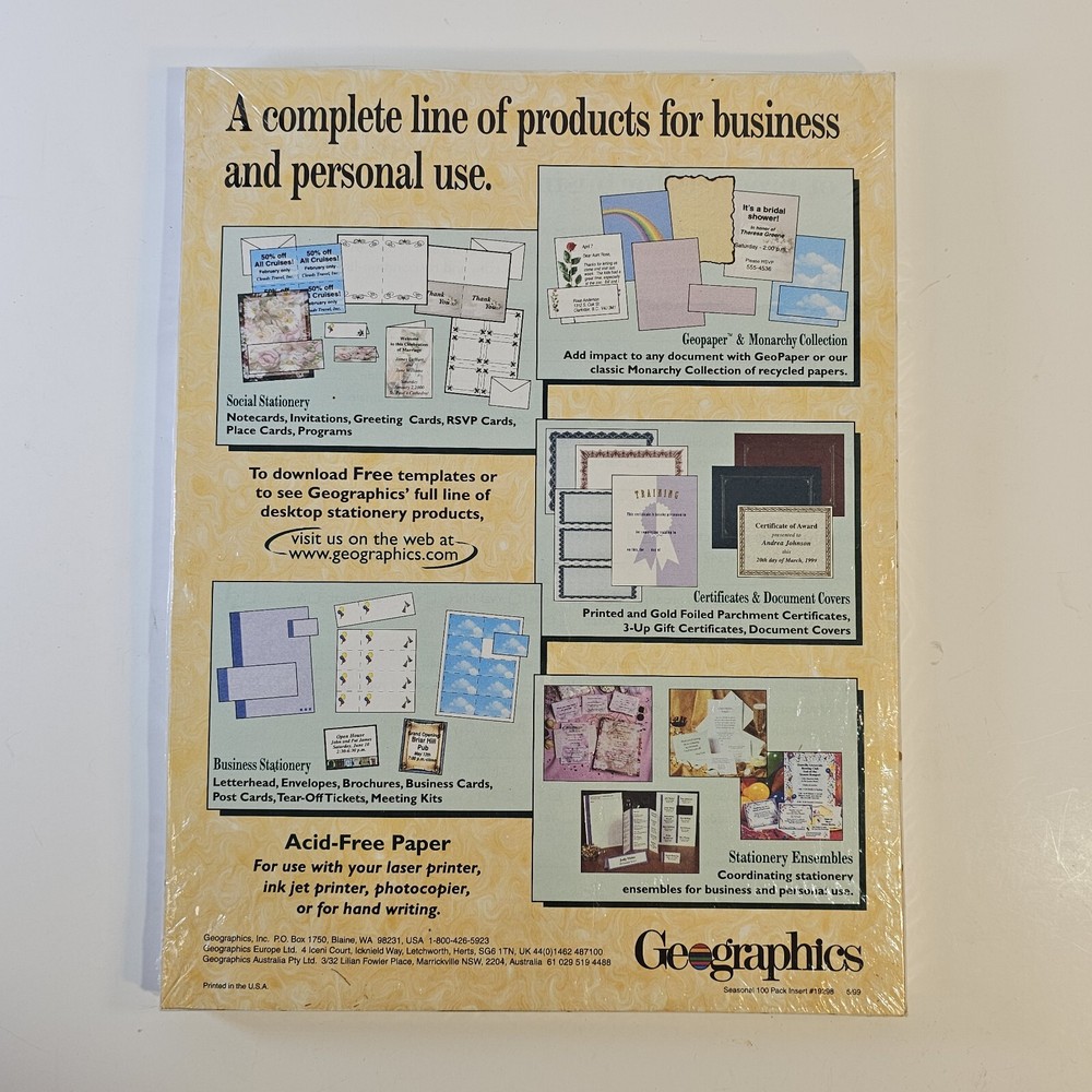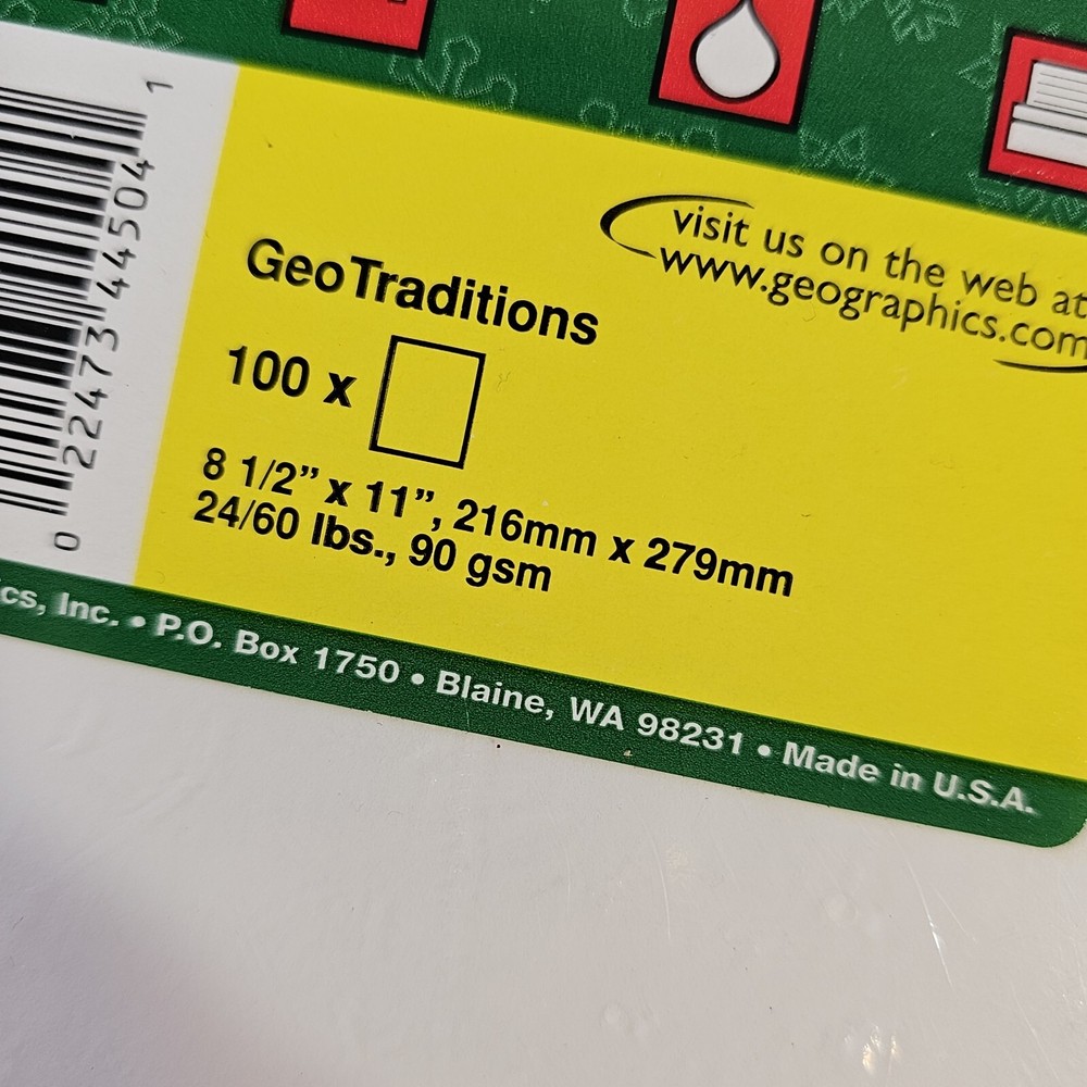 This Geopaper Seasonal Stationery Pack features festive designs perfect for the holiday season. The pack includes copy paper with a sheet size of 8.5 x 11 inches and 100 sheets per ream. Made in the United States by Geographics, this pack is ideal for businesses and individuals alike. Use this high-quality paper for your copier, printer, or fax machine to add a touch of holiday cheer to your documents. The pack is categorized under Business & Industrial, Office, Office Supplies, Paper Products, and Copier, Printer & Fax Paper. Get your hands on this pack today and elevate your document game this holiday season.