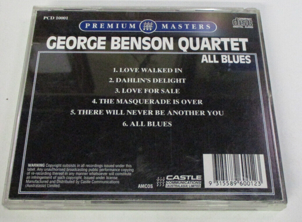 CD Details: All Blues George Benson Quartet Song Titles - see photo CD is good - one scratch outside the field of play CD insert is good Crystal case is good, moderate wear Buyer to pay postage where indicated. Please contact me prior to bidding if you require further information.