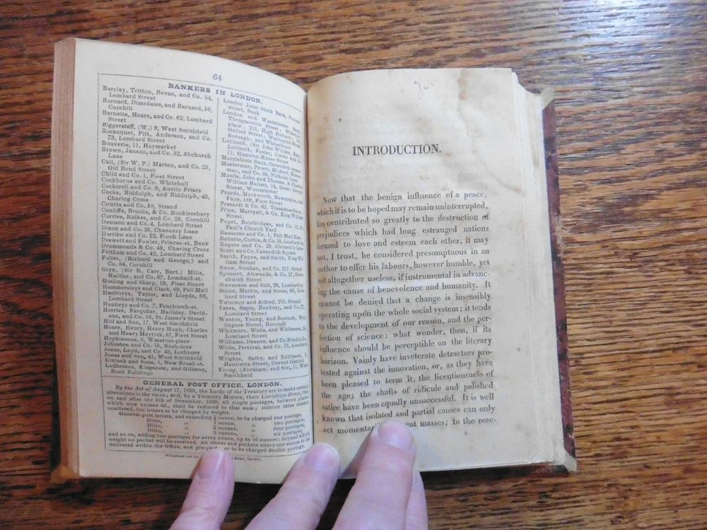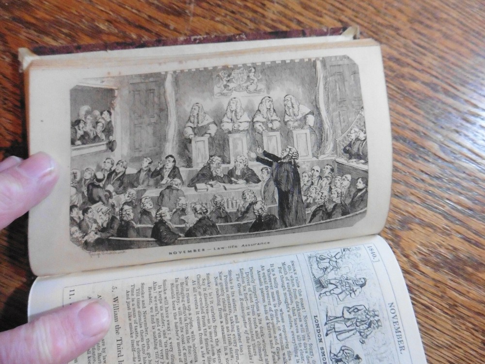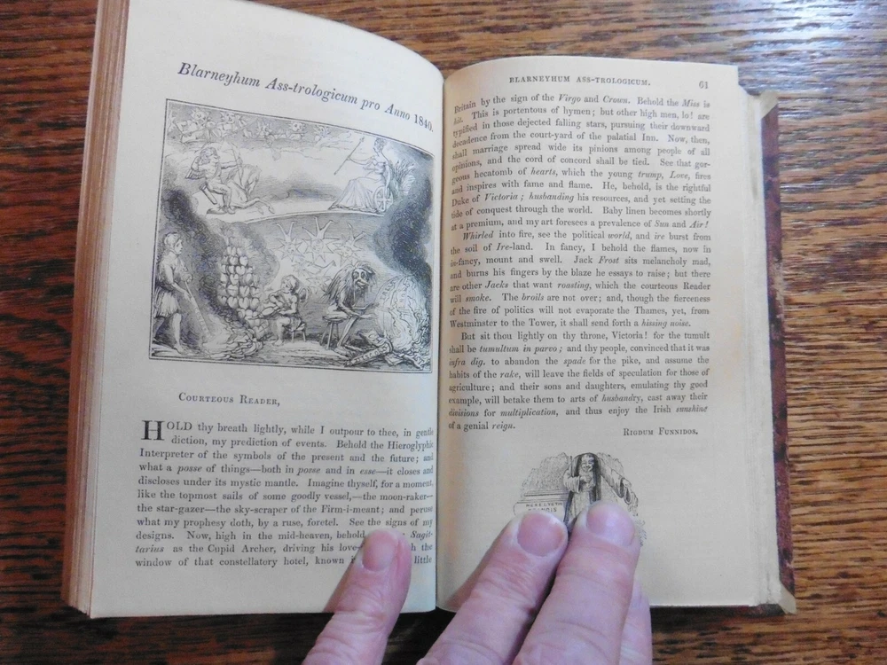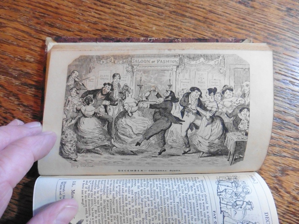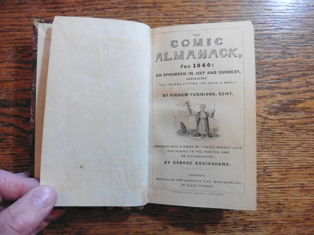 ILLUSTRATED BY GEORGE CRUIKSHANK : The Comic Almanack for 1840. 12mo; 64p. 12 plates.. complete. Contemporary half calf, A VG copy. Valuable for containing the first editions of a W.M.Thackeray story : Barber Cox. Also bound in is an incomplete copy of Moliere's Tartuffe