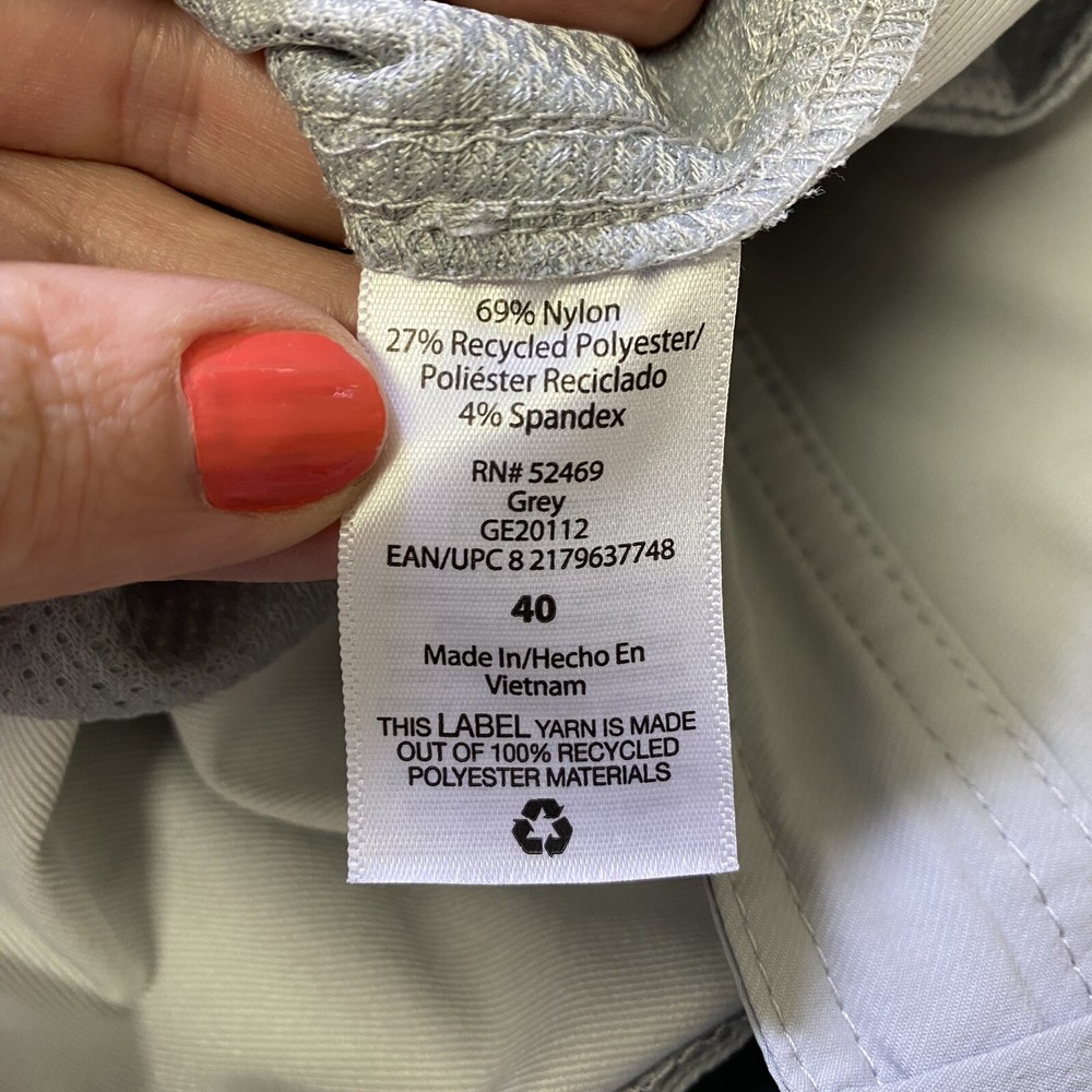 These fishing shorts are perfect for outdoor adventures! The gray color is versatile, and the nylon mesh pockets are super handy for storing gear. The fabric feels durable yet comfortable, with just the right stretch. Great pre-owned condition—looks barely worn. Love that they come from a smoke-free home! The waist fits true to size, and the length is ideal for moving freely. A fantastic find for fishing or casual wear.