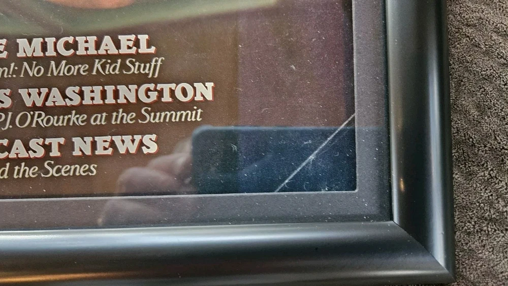 This framed wall hanging features the iconic musician George Michael, known for his hits in the 1980s. The magazine is in its full state and has been well-preserved over the years. This framed wall hanging is a must-have for any fan of the music scene. Featuring a full First print copy of Rolling Stone Magazine issue #518 1988 This unique item is perfect for display in any music lover's home or office. Magazine. Vintage Magazine. Beautifully Framed Ready to hang on wall Condition: Good. 1st Edition. A quality, glossy magazine. Not a reprint The only defect is the label on the front cover (picture). Practically in excellent condition. Frame Material - Acrylic and Glass Magazine Float Frame - Wall Mount - Ready to Mount on wall Shape - Rectangular Product Dimensions - 11in X 13in (27.9cm X 33cm) You can remove this rolling stone from the frame and read it cover to cover. It will go back in the frame easily.