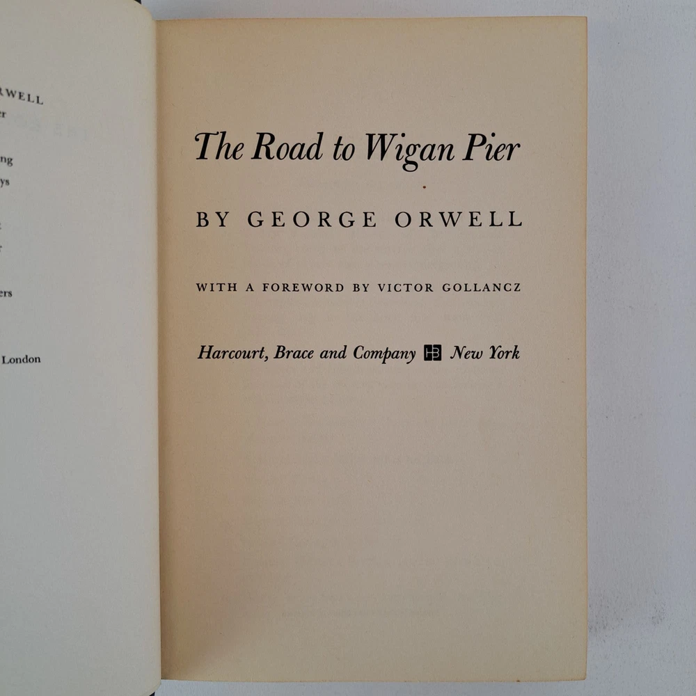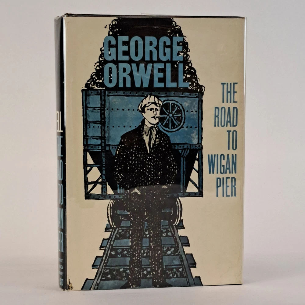 THE ROAD TO WIGAN PIER Author: Orwell, George Title: THE ROAD TO WIGAN PIER Publication: New York, NY: Harcourt, Brace and Company, 1958 Edition: First American Edition, First Printing Description: Octavo, xxiv, 264 pages. In Very Good condition with a Very Good minus condition dust jacket. Black spine with white and blue lettering. Dust jacket is wrapped in a mylar covering, price clipped, has mild chipping and creasing along the spine and rear head fore corner, mild bending wear along the spine head and tail edges, scuff marks, the corners of the flaps have been cut off and have adhesive stains. Boards have stains, and mild bending wear and fraying along the spine head and tail edges. Textblock has a stain and rubbing wear on the front end-page, adhesive stains along the gutter of the pastedown pages and end pages, 74-75, and 262-263, creasing on page 86, stains on page 10, and mild age toning along the edges. Shelved in Room C. Seller ID: 1392541 Subject: Essays & Speeches Welcome to the eBay store of Second Story Books! DC's Oldest Rare and Used Bookstore, Second Story Books operates two open shops in the Washington D.C. metropolitan area. We have an extensive internet presence and provide accredited appraisals member ASA. This listing was created by Bibliopolis.