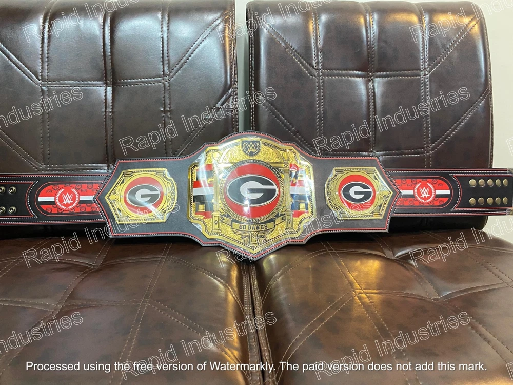 Georgia Bulldogs Championship Legacy Title Belts Adult Size 2mm Brass 100% ORIGINAL LEAT HER STRAP PLATE MATERIAL BRASS PLATE THICK 2mm Strap Is Made With Top Quality. Strap Color You Can Change On Demand. Adult size Full length belt almost 50inch Fits upto 50 inch waist We manufacture all types of wrestling and boxing belts in good and standard quality, apart from this we also manufactue customized belts. You can trust us and place orders without any worries, We do not compromise on our quality. We use good quality leather on our belts and we strive to create a belt that meets the customer's expecations. If you buy more then 1 item, you will also be given a discount. Shipping: We will ship your belt within 7 working days after receiving full payment. We shipped through DHL or FedEx. FeedBack: If you have any problem related to the product, please contact us before giving negative feedback. Your feedback is very important to us and to new customers, so be sure to share your opinion.