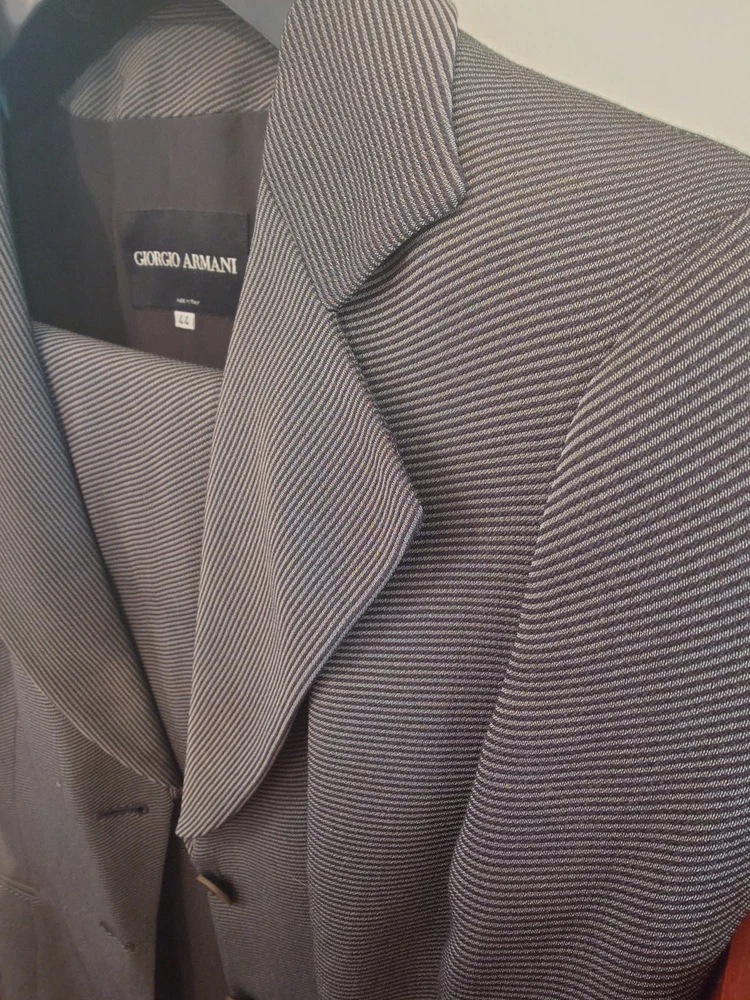 Georgio Armani suit Size 44 Womans Trousers and Jacket Leg length of 39.5 inches.