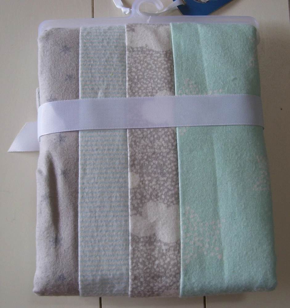 Gerber 4 Pc Green/Gray/White Star, Cloud, and Striped 100% Cotton Flannel Multi Purpose/Receiving Blankets. Blankets measure 30 X 30 Inches Each. New with tags. Smoke and Pet free home. Winning bidder to pay within 3 days listing end. Check out my other listings for more great deals! RETURN POLICY DETAILS Returns are accepted with prior approval ONLY if item is misrepresented in the listing. You must contact me first before returning an item. I do NOT accept returns for buyer choosing the wrong size/item not fitting. There are NO returns/refunds on pageant and special occasion wear.