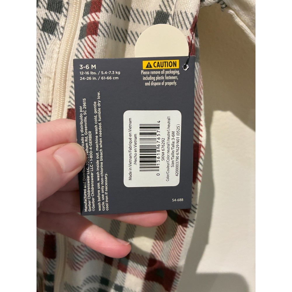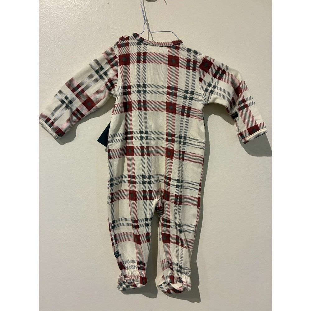 Soft thermal footed sleeper features a classic plaid pattern in red, navy, and cream. Designed with a full-length front zipper for easy changes and a safety tab at the neck to protect delicate skin. The long sleeves and attached feet provide full coverage and warmth, making it an ideal choice for cooler nights or cozy lounging. Crafted from a comfortable waffle-knit texture that offers breathability while maintaining heat. Brand: Gerber Material: Cotton Blend Pattern: Plaid Color: Cream, Red, Navy Style: Footed Pajamas Closure: Zip Front Sleeve Length: Long Sleeve Keywords: Buffalo Plaid, Holiday, Christmas, Winter, Thermal, Waffle Knit, Unisex, Baby Shower Gift, Sleep and Play, Newborn Essentials, Classic, Traditional, Cozy, One Piece