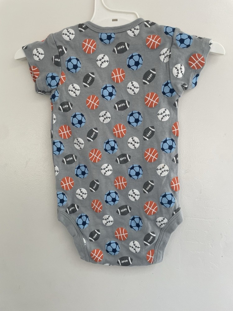 Gerber Baby Boys Colorful Sports Balls 100% Cotton Short Sleeve Onesie Gray 12M. Condition is pre-owned. Smoke free, pet free home. Shipped via USPS Ground Advantage. In very good condition. Free of rips or stains.
