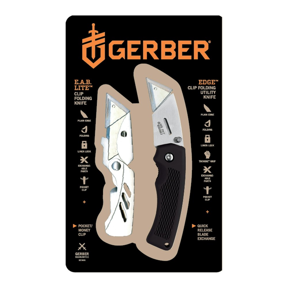 Crafted for durability and ease of use, the Gerber Gear EAB Lite + Edge Utility Folding Knife Box Cutter Combo Set offers a reliable cutting experience. The set includes two knives, each featuring a locking blade design to ensure stability during use. The blades are made of sturdy steel, complemented by a textured grip handle for a secure hold. The Gerber Gear EAB Lite Clip Folding knife boasts a sleek black and steel design, with a manual opening mechanism for quick access. The utility blade type is perfect for a variety of cutting tasks, while the locking blades provide safety and efficiency. This combo set comes in standard packaging, making it a convenient addition to any toolkit or pocket.