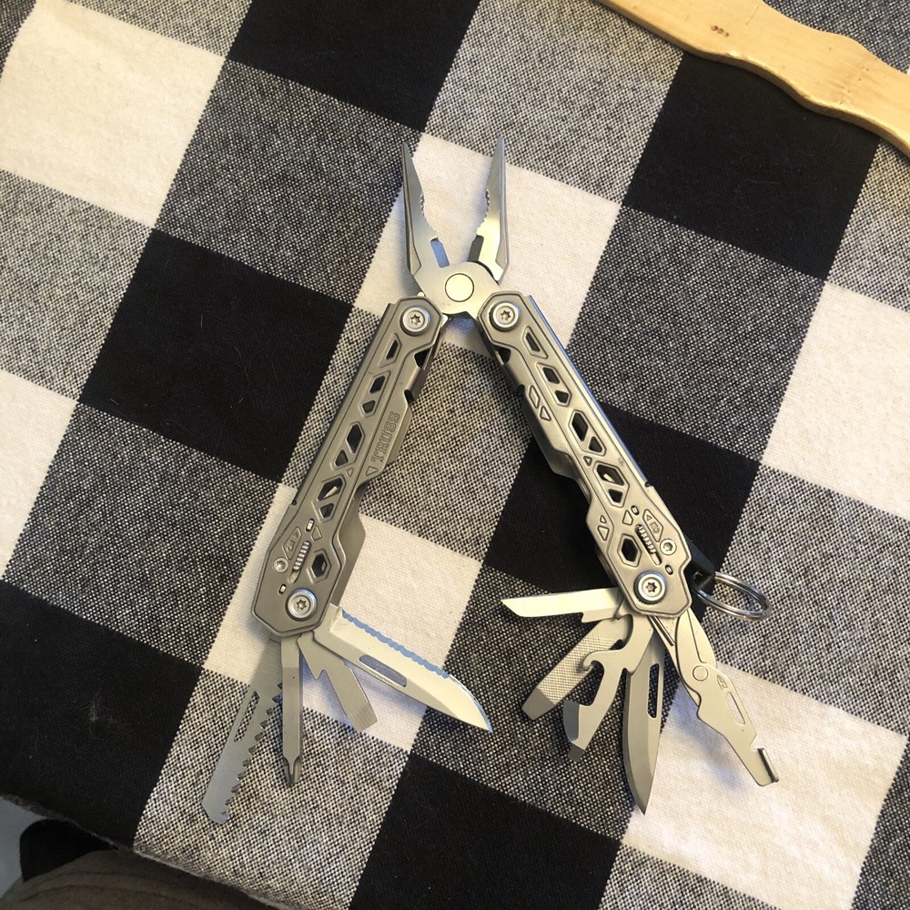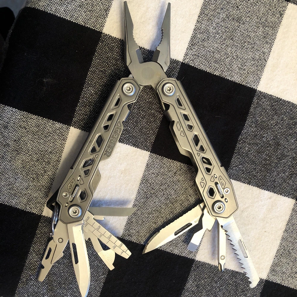 The Gerber Truss Multi-Tool is a robust companion for any adventure or task, featuring a versatile collection of ten tools including pliers, a knife, wire cutter, scissors, medium screwdriver, ruler, bottle opener, file, Phillips screwdriver, and can opener. Crafted from durable stainless steel, the Truss Multi-Tool boasts a straight edge blade for precision cutting and a non-slip grip for secure handling. In addition to the multi-tool, the package includes the Gerber Dime Pocket Knife, a compact and reliable utility knife with a 3-inch stainless steel blade, designed for everyday carry. Both items are finished in a sleek black color, offering a stylish and functional addition to your toolkit. Whether for camping, hiking, or everyday use, these Gerber tools are engineered to deliver durability and performance.