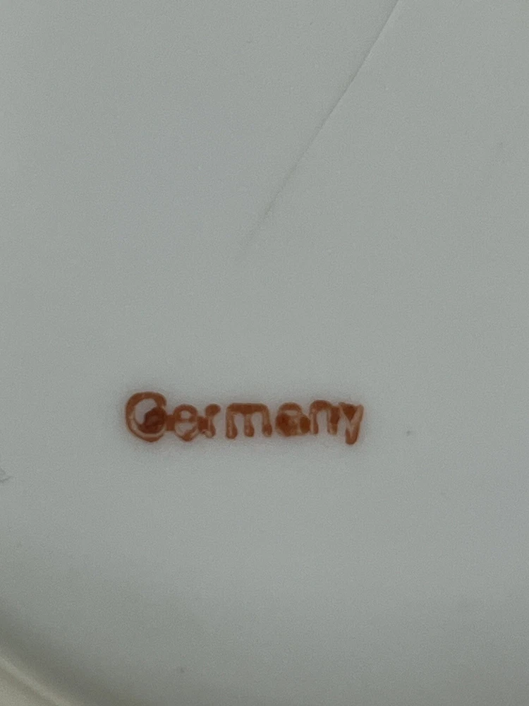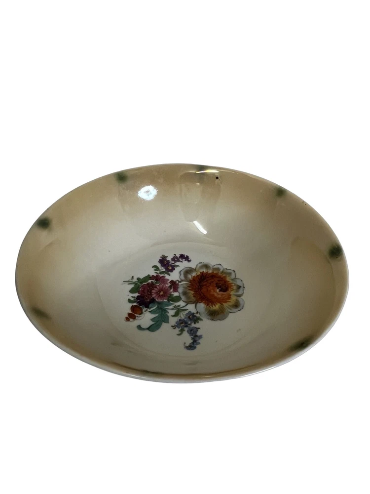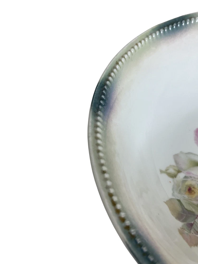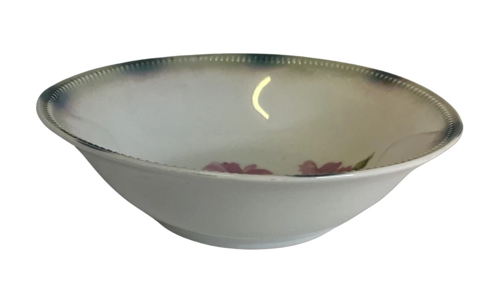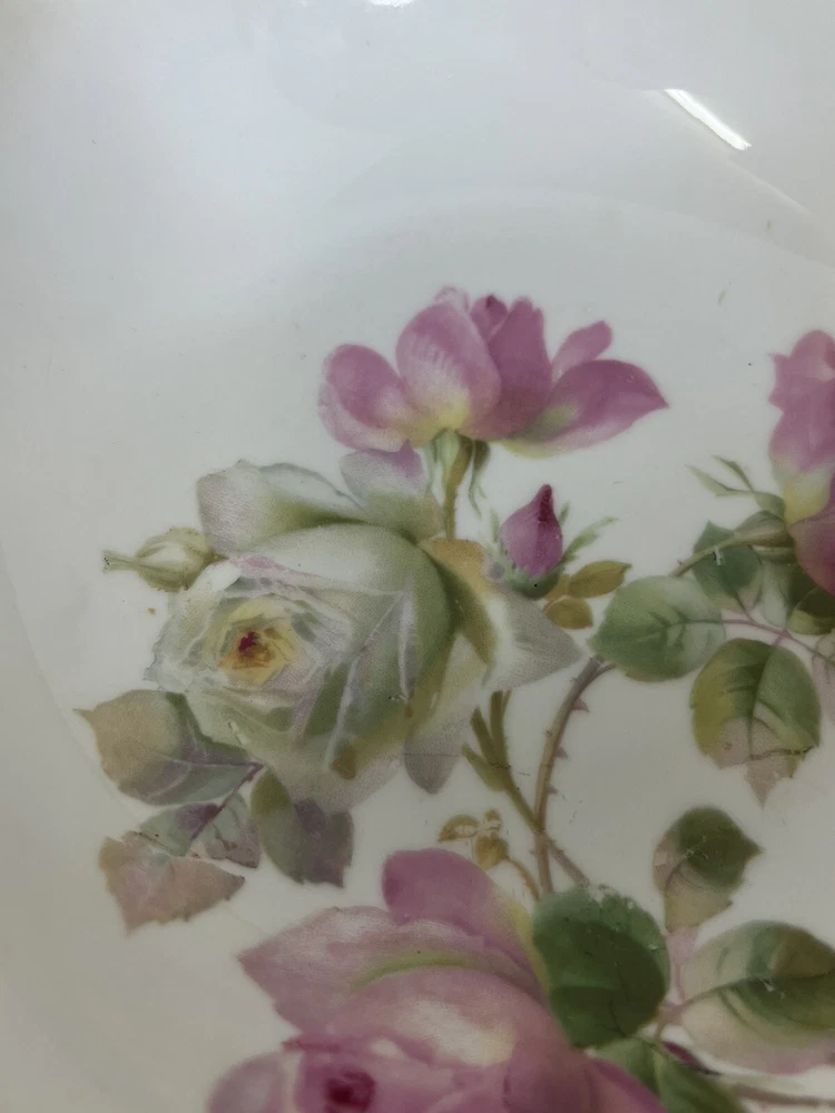 German Hand Painted Vegetable Serving Bowl Pink Roses 8 in diameter , 2.25 in tall. Good Condition - No chips or cracks - some glazing on bottom - see pictures for details Please contact me with any questions