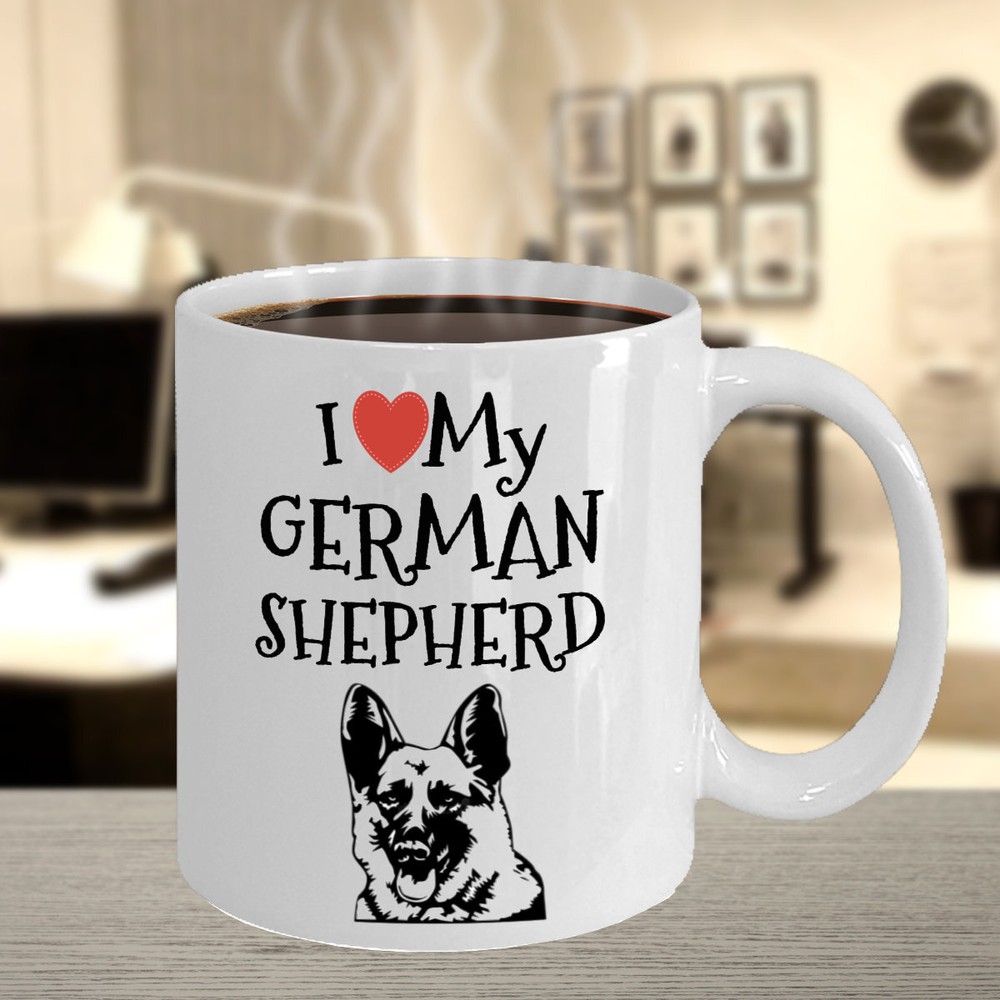 German Shepherd Mug I Love My German Shepherd Coffee Mug Ideal Gift For Pet Product Details.. This high quality 11oz. ceramic white mug has a premium hard coat that provides crisp and vibrant color reproduction sure to last for years. Perfect for all hot & cold beverages. The highest quality printing possible is used. It will never fade no matter how many times you wash it. Material: 100% Ceramic. Print both sides. Dishwasher and Microwave Safe. High Gloss + Premium White Finish. Printed in the U.S.A. Personalized & Custom. We support personalized and custom mug to add custom, when placing an order, you can add notes to the "order note" in shipping address section. Also you can contact us directly via message. Shipping Info. Ready to ship in 1 to 2 business days, All products are made-to-order and proudly printed in the United States. Shipped by USPS and DHL, You will receive your order in 5-7 days. Replace & Refund. All products are defective during shipping broken, chipped will be replaced free of charge. You are not satisfied with the product, we will refund 100% money to you. If any other issues arise, please do not hesitate to message, we would be more than happy to assist you.