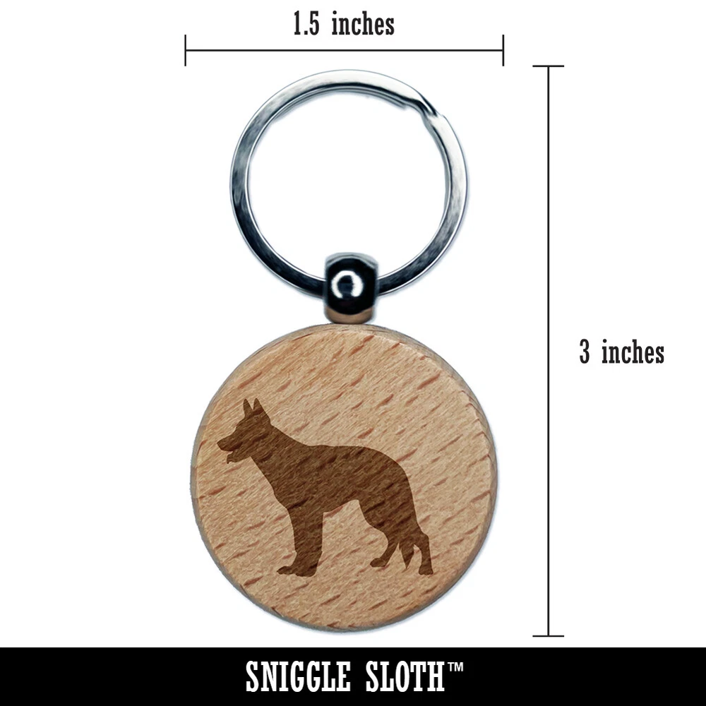 German Shepherd Dog Solid Engraved Wood Round Keychain Tag Charm