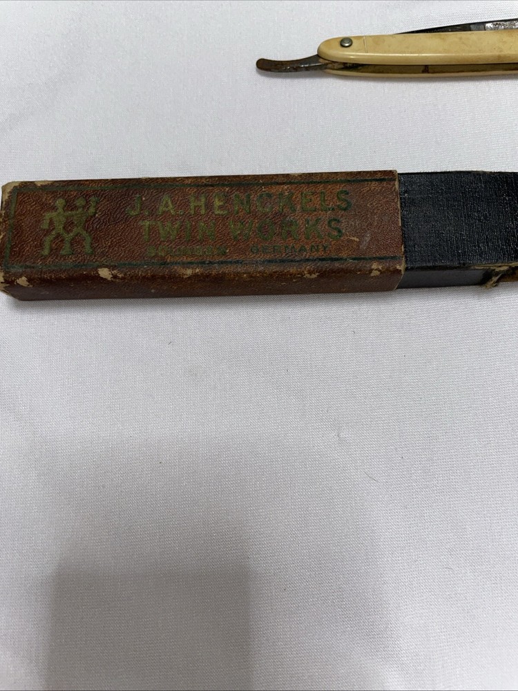 Antique straight razor from J A Hemckels No 401 in original box with instructions. The box is in tough shape as seen in the pictures. The razor has some obvious rusting and the blade is a little loose. Please look carefully at the pictures before bidding. If you have any questions please don’t hesitate to ask. I ship using USPS Ground Advantage within 2 business days of receiving payment. Thank you for looking 😊