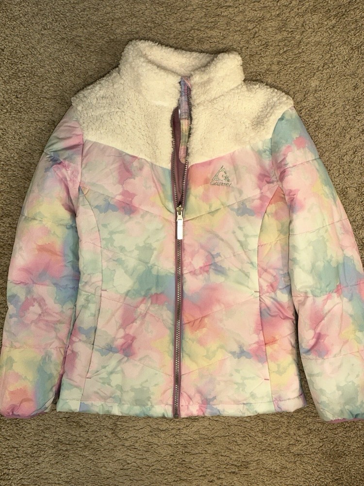 Girls Blue and White Water Repellent Fleece-Lined Coat Size 14 No Hood