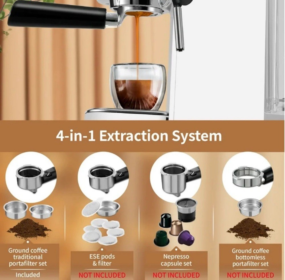 6-in-1 Espresso Machine with 20 BAR Pump and Milk Frother for Cappuccino & Latte