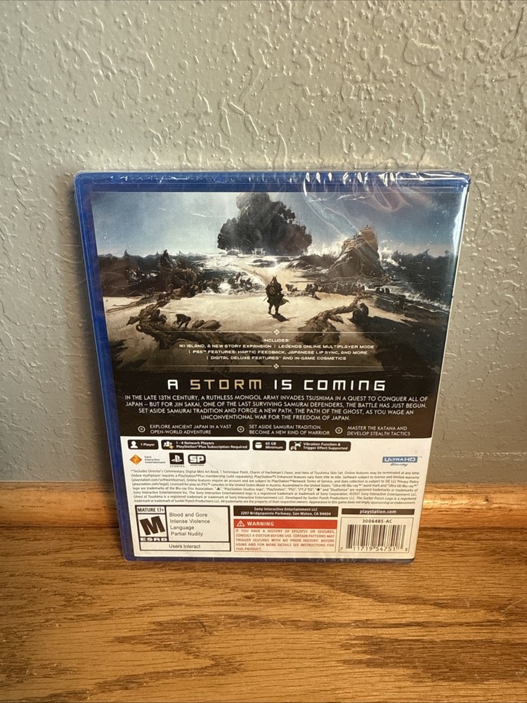 The Ghost of Tsushima Director's Cut for Sony PlayStation 5 is an enhanced version of the popular action-adventure game. Published by Sony PlayStation, this game is rated M for Mature audiences and offers an immersive gaming experience. With additional content and enhancements, this Director's Cut version allows players to dive deeper into the world of Ghost of Tsushima, providing hours of exciting gameplay and storytelling on the cutting-edge Sony PlayStation 5 platform.
