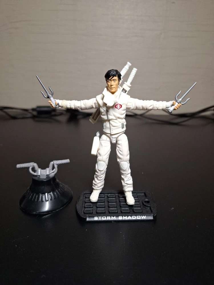 Gi Joe 2009 Rise of Cobra 4” Storm Shadow Paris Pursuit Action Figure by Hasbro is a must-have for any G.I. Joe fan. This fully jointed action figure comes equipped with a gun, knife, and sword for dynamic play. The detailed design and adjustable features make it a standout piece for collectors or kids aged 5-7 years old. Perfect for recreating scenes from the G.I. Joe: The Rise of Cobra movie or displaying proudly in any action figure collection.