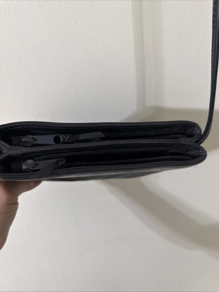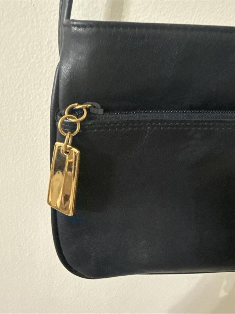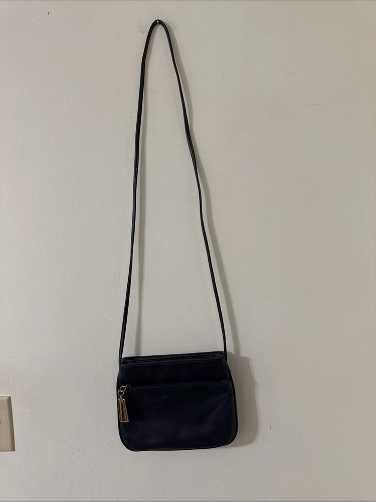 This Giani Bernini crossbody bag in Midnight Blue is the perfect accessory for any stylish woman. With a solid pattern and gold hardware, this bag is both fashionable and functional. The zip closure keeps your belongings secure, while the 8-inch width, 7-inch height, and 3-inch depth provide ample space for all your essentials. The black lining beautifully complements the blue exterior, making this bag a true statement piece. Crafted from high-quality leather, this crossbody bag is built to last. Its versatile style makes it suitable for any occasion, from a day out with friends to a formal event. Whether you're looking for a chic accessory or a practical way to carry your belongings, this Giani Bernini bag is sure to impress.