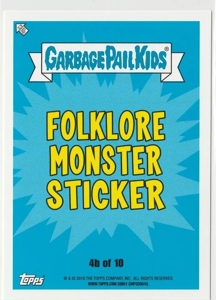 Mononym: overourheads Country/Region of Manufacture: United States Franchise: Garbage Pail Kids Card Size: Standard Series: 2018 Oh, the Horror-ible! OTH Subset: Folklore Monster Sticker Vintage: No Store ID: American Pop Cult Features: Base Set, Sticker Language: English Type: Non-Sport Trading Card Set: Oh, The Horror-ible Genre: Comedy, Horror, Parody, Satire, Sci-Fi Manufacturer: Topps Year Manufactured: 2018 Card Type: trading card sticker Material: Card Stock Original/Licensed Reprint: Original Autographed: No Related ID: overourheadz