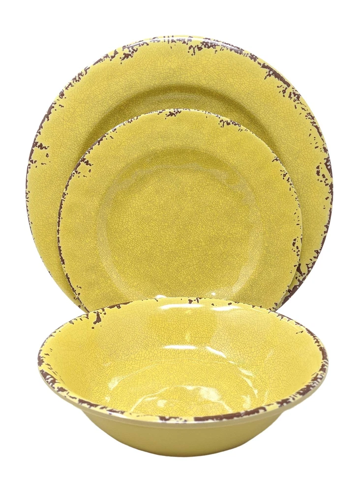 Gianna's Home 12 Piece Rustic Farmhouse Melamine Dinnerware Set, Service for 4 (Yellow) MELAMINE HARD PLASTIC - Made of heavyweight, durable melamine, a HARD PLASTIC material that feels like ceramic but is lighter and less prone to chipping and breaking than ceramic. Suitable for casual use indoors and outdoors. Also is great for dorm rooms, camping and RVs. Melamine is BPA free and dishwasher safe but DO NOT MICROWAVE as it is not recommended for use in the microwave. NOT SAFE FOR MICROWAVE USE - Melamine is a hard plastic material that is not recommended for use in the microwave DURABLE - High quality melamine is chip, break, scratch and shatter resistant. Our melamine dinnerware is heavier than many other melamine dinnerware available. HEAVYWEIGHT - Pieces are much heavier than typical melamine, approximate weight of each piece: 11 inch dinner plate - 16 oz, 8.5 inch salad plate - 10 oz, 7.5 inch bowl - 8 oz SERVICE FOR 4 - Includes: 4 each 11 in. dinner plate, 8.5 in. salad plate and 7.5 in. bowl Shipping We offer FREE shipping on all orders! We use a selection of shipping services such as UPS, FedEx, USPS etc. We only ship to the lower 48 states, no APO/FPO addresses or PO Boxes allowed. Local pickups and combined shipping options are not provided at this time. Return You can return a product for up to 30 days from the date you purchased it. Any product you return must be in the same condition you received it and in the original packaging. Please keep the receipt. Payment We accept payment by any of the following methods: PayPal Please pay as soon as possible after winning an auction, as that will allow us to post your item to you sooner! Feedback Customer satisfaction is very important to us. If you have any problem with your order, please contact us and we will do our best to make you satisfied. Contact Us If you have any queries, please contact us via ebay. We usually respond within 24 hours on weekdays. Please visit our eBay store to check out other items for sale! Thank you for shopping at our store.