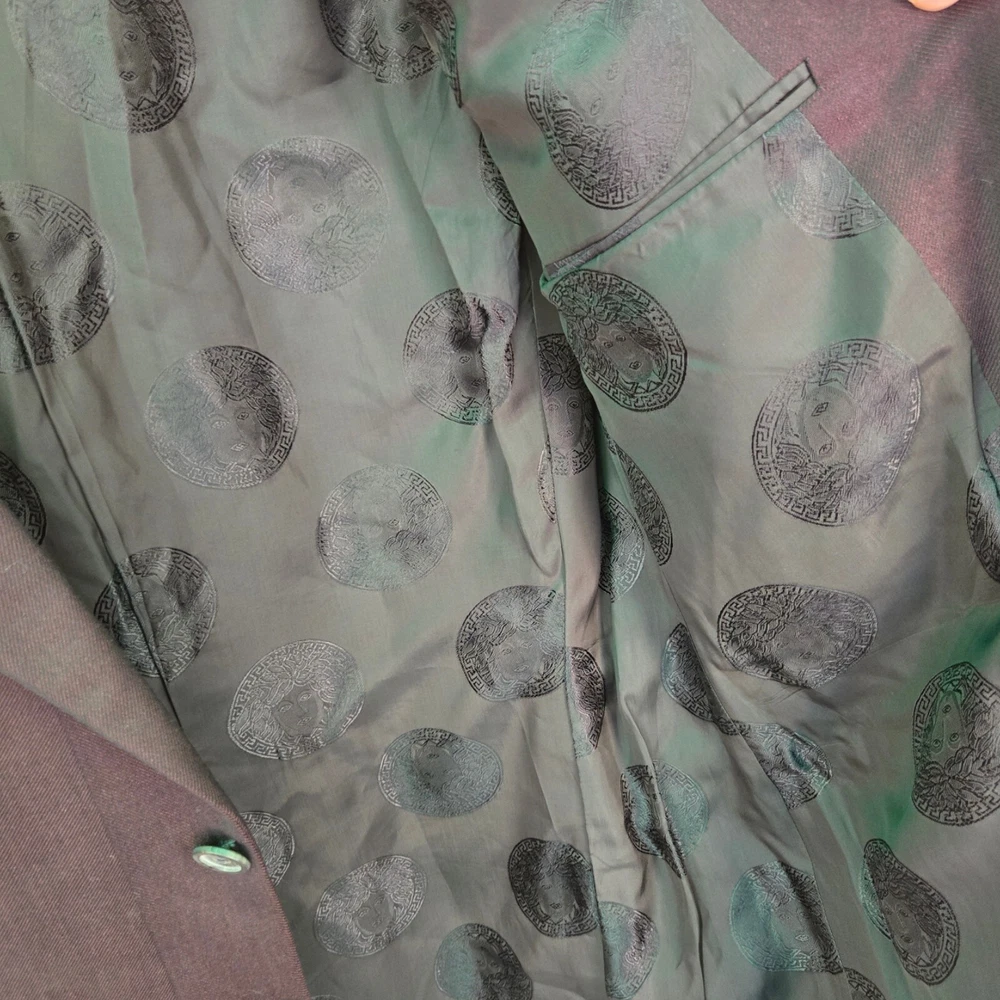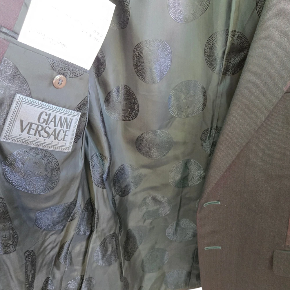 Handmade: Yes Jacket/Coat Length: Regular Department: Men Jacket Cut: Single-Breasted Vintage: Yes Jacket Front Button Style: Two-Button Color: Multicolor Chest Size: 42 Fabric Type: sharkskin Lining Material: Cupro Season: Fall, Spring, Winter Leg Style: Straight Garment Care: Dry Clean Only Jacket Sleeve Button Style: Three-Button Waist Size: 35 in Occasion: Business, Casual, Formal, Party/Cocktail, Travel, Wedding Features: gianni versace suit 42r, gianni versace suit 52it, gianni versace suit 52it drop 7, gianni versace suit 42r drop 7, versace 42r, versace medusa lined, gianni versace couture suit 42r, gianni versace couture suit 52it, made in italy, sharkskin, peak lapel, versace peak lapel, versace wide lapel Material: Wool Country/Region of Manufacture: Italy Inseam: 31 in Size: 42 Size Type: Regular Front Type: Pleated Jacket Lapel Style: Peak Theme: 90s, Classic, Designer, Italian, gianni versace suit 52it, gianni versace suit 42r, gianni versace 1990s couture suit, gianni versace 1990s couture suit 42r, versace mens suit 42r, versace mens suit 52it, sharkskin suit 42r, versace sharkskin suit 42r, peak lapel, vintage gianni versace Number of Pieces: 2 Piece Type: Suit Fit: Classic Jacket Vent Style: Ventless Style: 2 Piece Brand: Versace Pattern: sharkskin