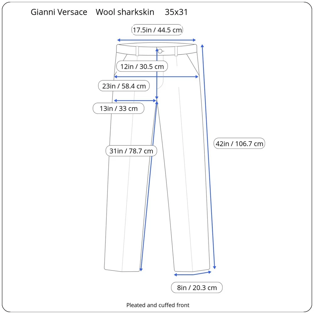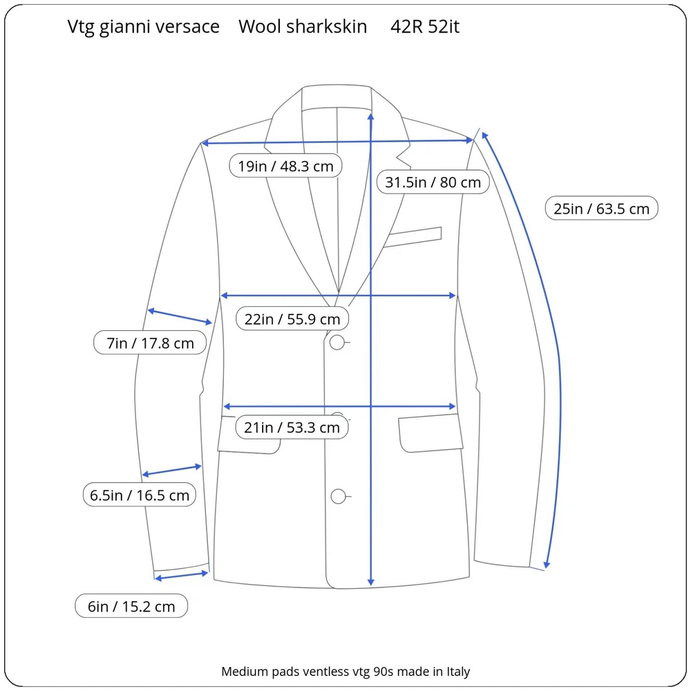 Gianni Versace Suit 42r 52it 35x31 Wide Peak Lapel Sharkskin Drop 7 Couture