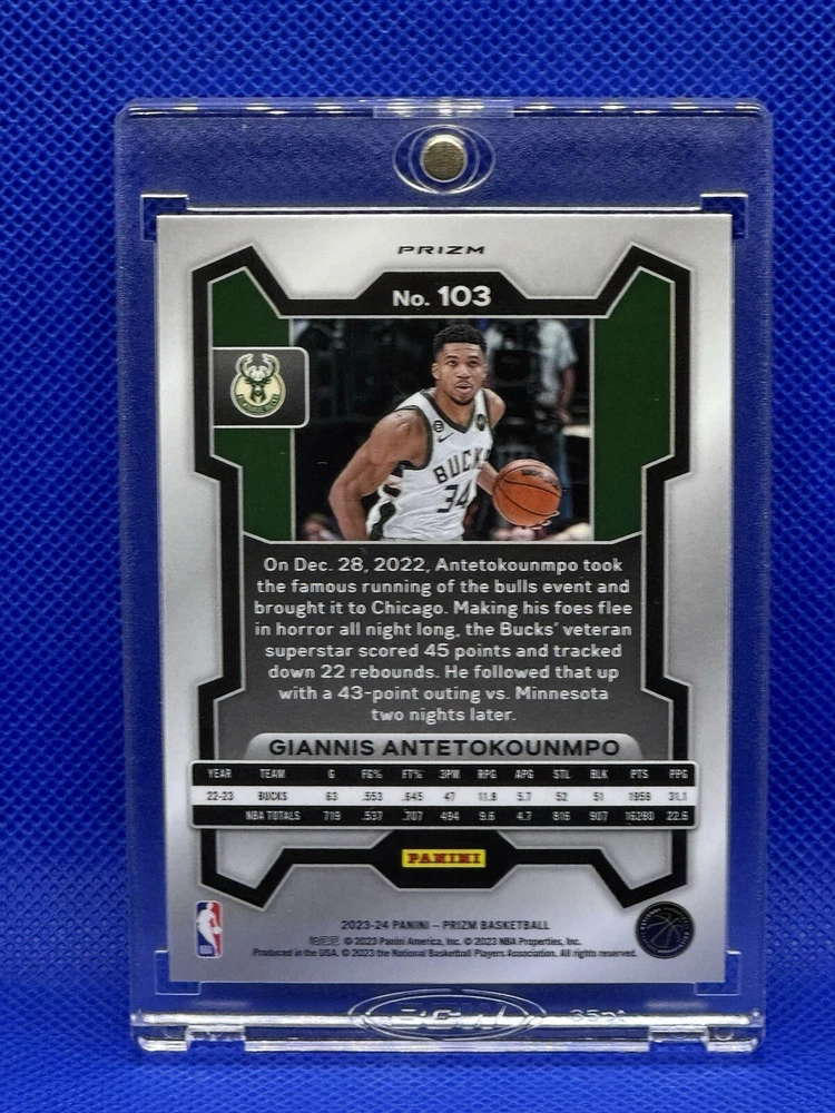 Set: 2013-14 Panini Prizm Sport: Basketball Features: Short Print Event/Tournament: NBA Finals Team: Milwaukee Bucks Manufacturer: Panini League: National Basketball Association (NBA) Original/Licensed Reprint: Original Material: Card Stock Year Manufactured: 2024 Autographed: No Player/Athlete: Giannis Antetokounmpo Parallel/Variety: Green Card Size: Standard Type: Sports Trading Card Season: 2023-24 Country/Region of Manufacture: United States Language: English Vintage: No