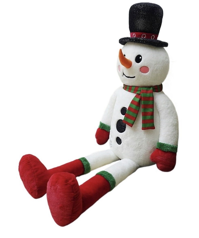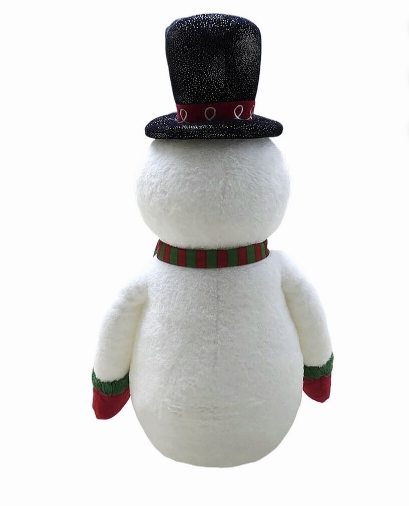 The Holiday Time Jumbo Snowman Christmas Plush brings cheerful winter fun to your home with its classic and cozy design. Measuring 34.5 inches tall, this adorable snowman features a friendly smile, carrot nose, and rosy cheeks that spread holiday joy. Dressed in a festive red and green striped scarf, red mittens, and matching boots, this soft plush snowman makes a perfect addition to your seasonal decorations. Its large size makes it great for cuddling, displaying under the Christmas tree, or adding a playful touch to your living room decor. The Holiday Time Jumbo Snowman Christmas Plush is sure to warm hearts and bring a merry spirit to your holiday celebrations. Holiday Time Jumbo Snowman Christmas Plush, White, 34.5" • Features a smiling snowman with a carrot nose and rosy cheeks • Dressed in a red and green striped scarf, mittens, and boots • Measures 34.5 inches tall for a jumbo festive display • Perfect for cuddling or decorating during the holiday season
