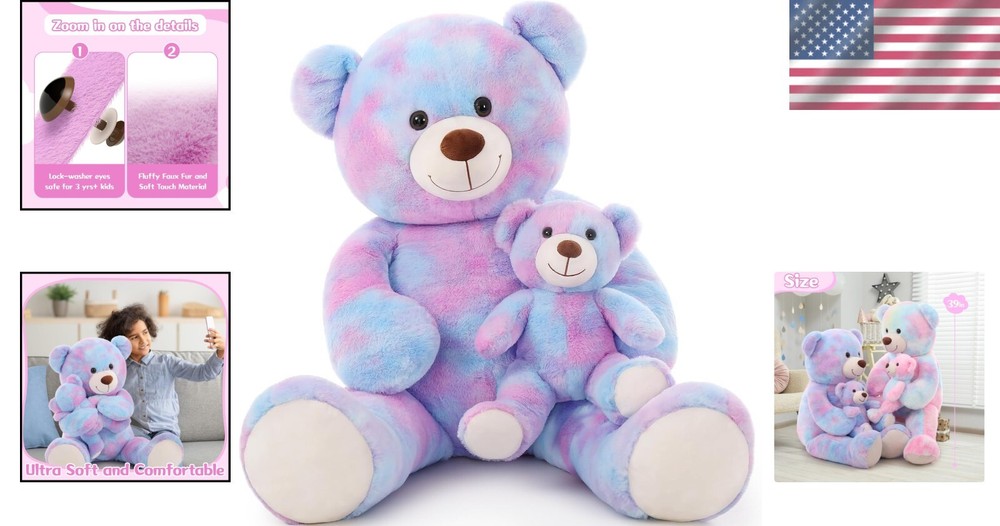 Giant 39in Tie-Dye Purple Teddy Bear Mommy with Baby - Perfect Gift for Kids ‹ › ‹ › ‹ › ‹ › ‹ › ‹ › ‹ › ‹ › ‹ › Giant 39in Tie-Dye Purple Teddy Bear Mommy with Baby Your perfect gift for kids and a delightful companion! Features: Adorable Design: This enchanting mother teddy bear features a bright smile and tenderly holds a lovely baby teddy bear. A design that radiates warmth and love, fostering a harmonious atmosphere wherever it is placed. Huggable & Safe: With its inviting warmth and comforting touch, this giant teddy bear relieves fatigue and stress. Equipped with lock-washer eyes and a stitched nose, it’s designed for safe, durable use. Perfect for little ones to embrace without worry. High Quality & Easy Care: Crafted from 100% recycled stuffing and high-quality polyester, this plush toy offers maximum softness and comfort. Hand wash recommended to maintain its charm, and the dryer keeps its fluffy texture intact. Perfect Gift: This giant teddy bear is the ultimate surprise to brighten the day of your loved ones during special occasions like Christmas, Thanksgiving, Valentine's Day, birthdays, or any anniversary. Versatile Decor: Ideal for any event - from parties to baby showers! This giant teddy bear can also be a cozy body pillow, accompanying you as you read, watch movies, or sleep. Benefits: Brings comfort and companionship Safe for children with durable construction Delightful gift option for various occasions Perfect as a decorative piece and cozy friend Why Choose Our Giant Teddy Bear? Looking for the perfect way to brighten a child's day or celebrate a special occasion? The Giant 39in Tie-Dye Purple Teddy Bear with Baby is more than just a plush toy; it's a heartfelt gift that brings joy, comfort, and smiles to children and adults alike. Its unique design, high-quality materials, and charming presence make it an unforgettable companion, destined to be cherished for years to come. Wrap your loved ones in love - order your Giant Teddy Bear today! Shipping Free & Fast Shipping - We offer free shipping to most of the USA with a normal delivery time of 3-7 days. However, due to the current situation, additional delivery time (up to 3 weeks) may be required for some items. Alternative Carriers - We may use alternative carriers (e.g. USPS, FedEx, UPS, etc.) to ensure your package arrives safely and on time. Due to the use of multiple carriers, we are unable to provide a tracking number automatically. Handling Time - Orders are processed and shipped within 1-2 business days of receiving cleared payment. Shipping Restrictions - Shipping to Alaska, Hawaii, Puerto Rico, Guam, and other US territories may incur shipping charges or delivery restrictions. Please contact us before ordering, or your order can be refunded/cancelled. State Restrictions - There may be restrictions based on your state of purchase. For example, certain items may not be shipped to California due to state regulations. Contact for Tracking Updates - If you require tracking updates or have any concerns about the delivery of your order, please feel free to contact us, and we will be happy to assist you. Return Please see our eBay Return Policy. Thank you. Payment We accept all major credit cards, PayPal, and Apple Pay for your convenience. Your payment information is secure and encrypted to ensure a safe and seamless transaction. Please complete your payment within 3 days of purchase to avoid any delays in shipping. Feedback Your feedback is extremely important to us. We strive to provide the best products and customer service possible. If you are satisfied with your purchase, please take a moment to leave us a positive review. If you have any concerns or issues with your order, please contact us before leaving negative feedback. We are committed to resolving any problems and ensuring your satisfaction. Contact Us If you have any questions or concerns, please feel free to reach out to our customer support team. You can contact us through the eBay messaging system. We are available Monday to Friday, 9:00 am to 5:00 pm EST, and we will do our best to respond to your inquiry within 24 hours. Thank you for supporting our small family business! UPC: Not Set Recommended Age Range: 3-12 Years Type: Stuffed Animal MPN: Giant_Teddy_Bear_Stuffed_Animal Features: Huggable,Safe,Large size,Soft touch,Cute face,Unique design,Comforting,Durable,Lock-washer eyes,Stitched nose,Hand wash,Air dry,Recycled stuffing Age Level: 3-4 Years,8-11 Years,5-7 Years Brand: Unbranded Animal: Bear Color: Tie-dye Purple Character Family: Not Set Occasion: Baby Shower Size: Large (24-36 in) Year: Not Set Country/Region of Manufacture: Not Set