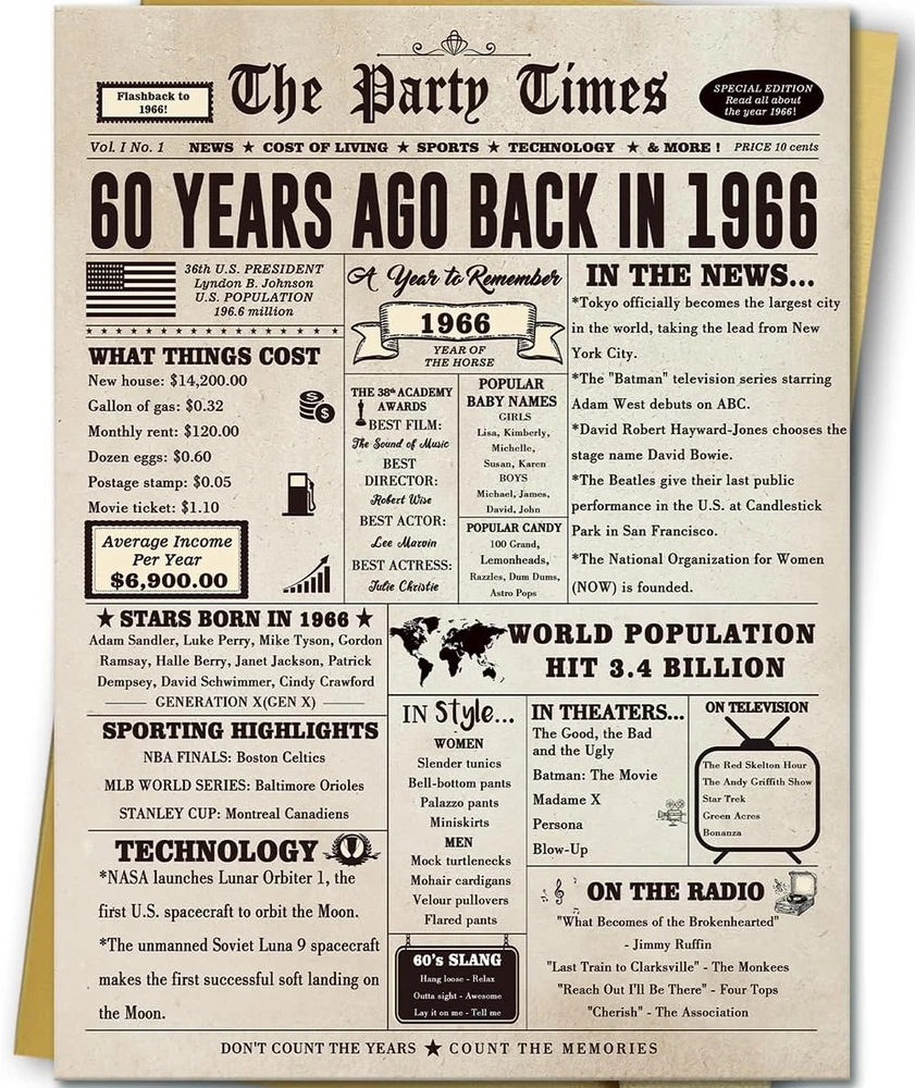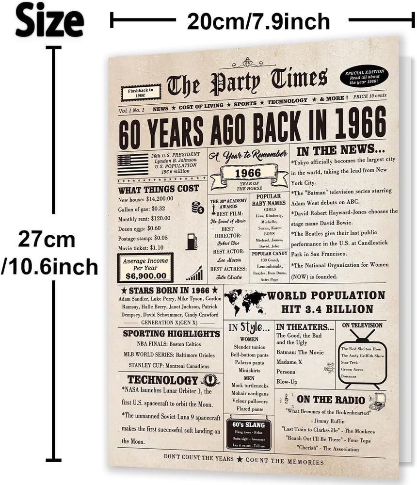 Store New Arrivals Add to Favorite View Feedback Contact Giant 60Th Birthday Card Gift for Women Men, Hilarious 60 Years Old Birthday Gift for Husband Wife, Large 60 Bday Party Decorations for Friends Family, Big 60 Birthday Card for Mom Dad Description Item model number HGFMG-HM222-BH Number of Items 1 Color 60th Manufacturer Part Number HGFMG-HM222-BH Item Weight 1.76 ounces Product Dimensions 10.6 x 7.9 x 0.04 inches Size 7.9 x 10.6 inches 60th Birthday Gifts-- Find interesting 60th birthday cards for your family. The cards contain some specific events which can help you review interesting events with family and friends 60 Birthday Cards-- You will receive an interesting and creative perfect 60 Bday card,have an unforgettable birthday party Product Information-- 7.9 x10.6 inches, wrapped in a gold matching envelope and protective bag to avoid damage to the greeting card Internal White Background-- 60th birthday gift ideas internal blank, leaving plenty of room for your personal blessings Quality--Our products are guaranteed. If the product is bent or damaged during transportation, you can send us a message to solve it Product description 1 60th Birthday Gift 2 60th Birthday Decoration Product Decoration Product Information 7.9 x 10.6 inches, wrapped in a gold matching envelope and protective bag to avoid damage to the greeting card. Send your best wishes to the recipient! The inside of the card is blank, leaving plenty of room for your personal blessings. ABOUT US We offer the best prices around on high quality products. Our E-store includes media such as books, movies, music and games while offering electronics, toys, sporting apparel, clothing, tools, general home, garden items and more. SHIPPING We are always working hard to ensure your package arrives as soon as possible. Please understand that some factors like weather, high postal traffic, and the performance of shipping companies are outside of our control. We offer free shipping to the lower 48 states and ship within 2 business days of payment, usually sooner. We do not accept P.O. Boxes. Please provide a physical address. For shipping outside of the continental USA, we only use eBay's Global Shipping Program.The item is shipped to KY and then sent to the rest of the world. International customers are responsible for all duties and taxes. Continue to check out in order to calculate costs for shipping the item to your country. Messages regarding eBay's Global Shipping Program MUST be directed at eBay EXCLUSIVELY. RETURNS We offer a 30-Day Return Policy on items which you are not completely satisfied with. You have the option for a full-refund or an exchange of the item. No returns are available on items shipped outside of the USA. PAYMENT We accept PayPal. CONTACT US This page content is yet to come Please ad us to your favorite seller and visit again later Thank You CUSTOMER SATISFACTION We try our very best to make sure every customer is completely satisfied. If there's a problem, message us! We're happy to help. WE ACCEPT Copyright © 2021 AutoDS. | All Rights Reserved