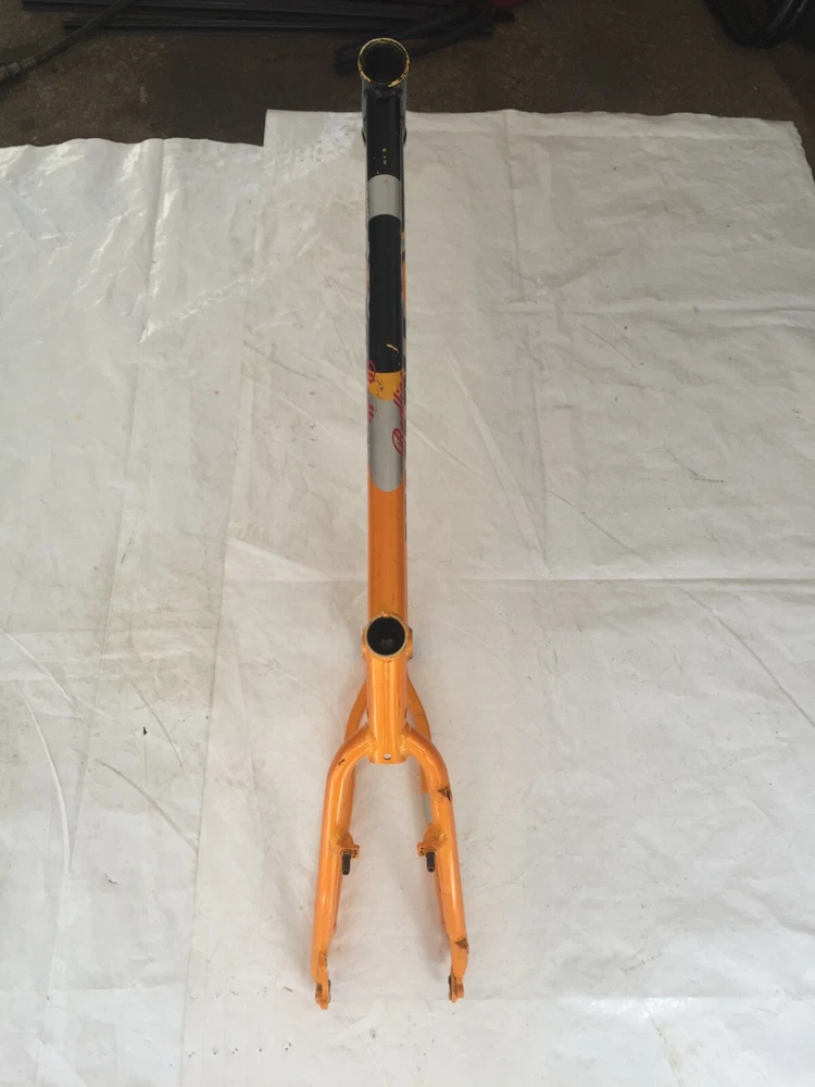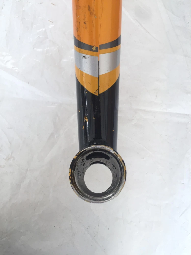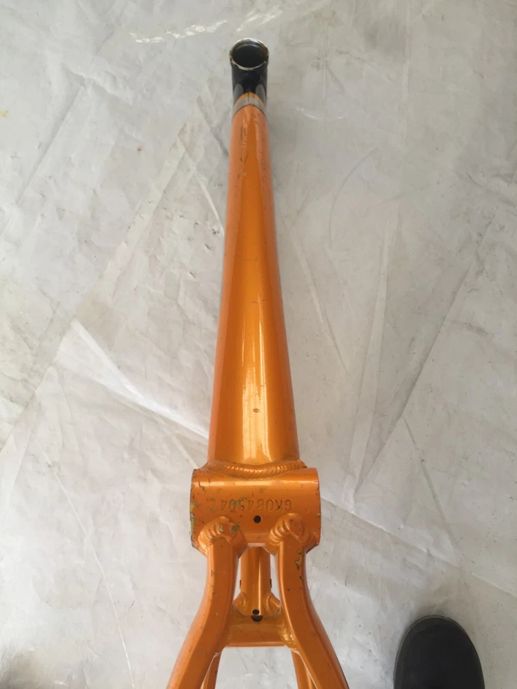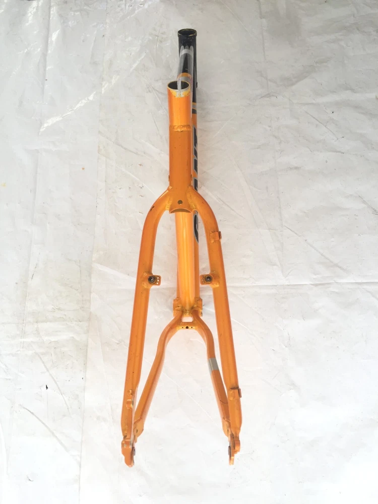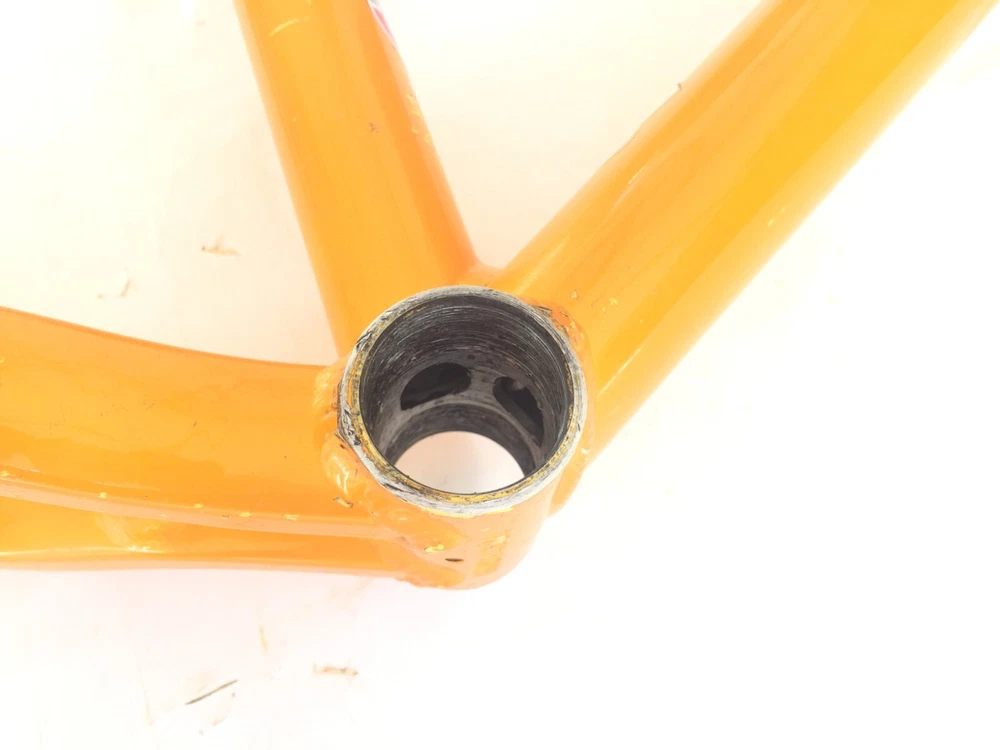 Giant ATX 840 mountain bike frame, for 26 inch wheel size. It says Large frame 21 inch frame I think its 1997 year or maybe 2003, not sure. No cranks, frame only. Light weight aluminum racing frame, hard tail 1.747 kg frame 425 chain stays It looks like roughly 600mm horizontal top tube. The lower head tube was slightly dented at the race at the front part, but I was able to bend it back to the original diameter and file it slightly. This should not affect anything when putting the bearing races in. Its back close to where it should be. Head tube 44mm inner diameter where the races go. No derailer hanger, but those can be found easily. Spares at bike store or online. Free Shipping to mainland USA 48 states & Canada. If outside that contact me for shipping price. Buyer Is Responsible to Make Sure Parts Fit their Application.