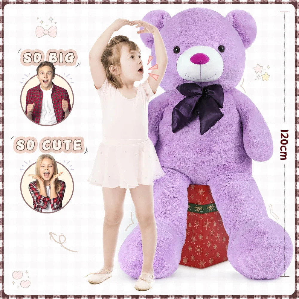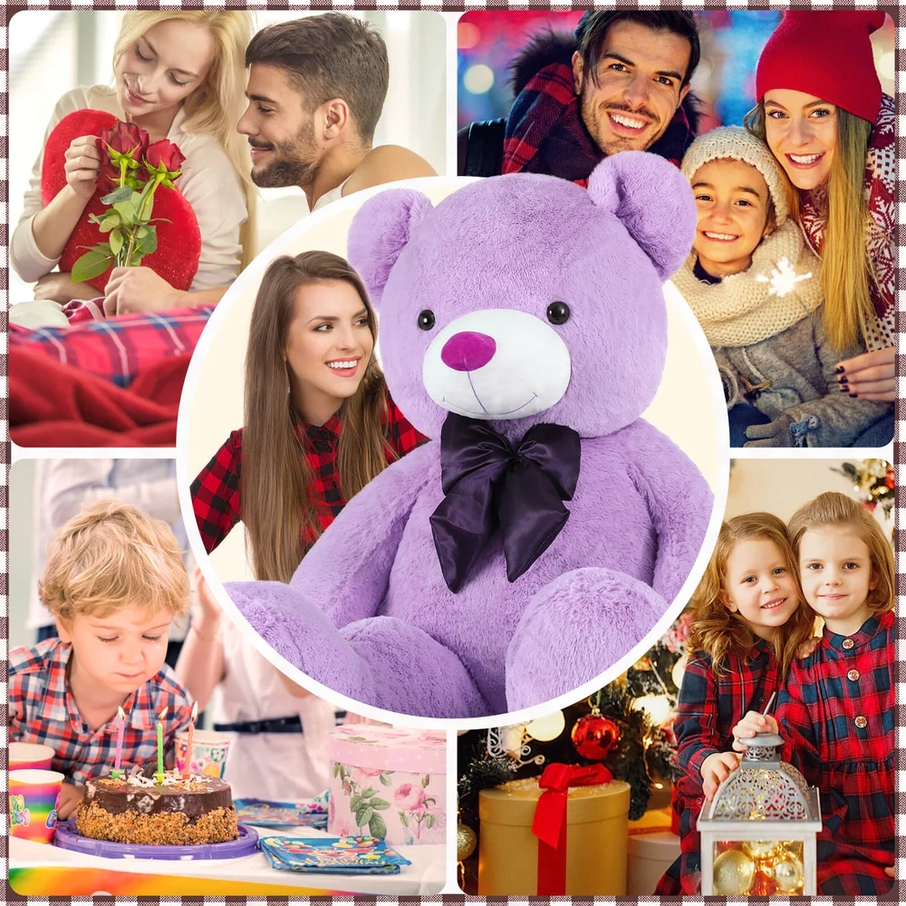 Let children not be alone and everyone feels your love, that is what MorisMos do. This MorisMos giant teddy bear is about 47 inches tall and made of 100% PP cotton. We make every product not only a toy but also be your friend or family, because of its unmatched softness and embracing. The best gift for birthday, Christmas, Valentine's Day. Come and take it home now Suitable Size: We give this bear stuffed animal a beautiful purple color, a perfect 47-inch size and a soft hand feeling, so it is good for hugging and snuggling High Quality: We use safe 100% PP cotton filling to make our teddy bear plush toys. Use age: 3+ years old Perfect Gift: Wonderful teddy bear for Christmas, Valentine's Day, birthday, etc. Whether boys or girls, adults or children, they will like it when they see it Decorate the Party: This adorable MorisMos giant teddy bear is the best choice for decorating your house or any party like wedding, baby shower and so on Washable: Please don't use the washing machine to clean it, this will cause the teddy bear to distort and tear up. We recommend that you use detergent and brush to gently clean the bear's surface