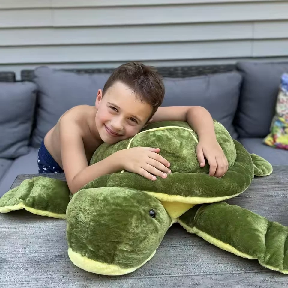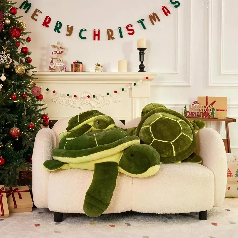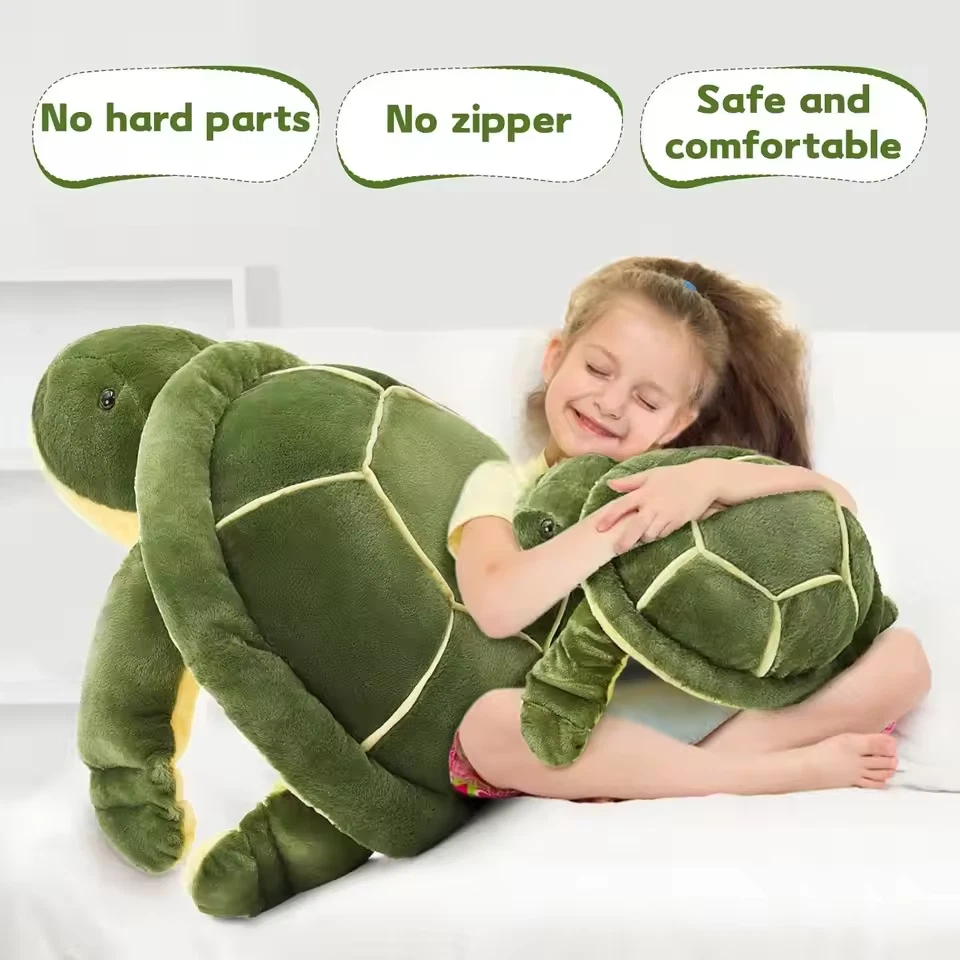 Immerse your child in the wonders of marine life with our Giant Turtle Stuffed Animal, an enchanting plush toy that promises to captivate the imagination. Measuring an impressive 25 inches, this large stuffed sea turtle boasts a vivid green hue, bringing a splash of color to any playroom. Designed for little ones aged 3 and up, it's a delightful addition to any collection. Crafted with a plush material that's soft to the touch, this friendly turtle is not just a cuddly companion but also a soothing Snuggle Buddy for storytime or quiet evenings at home. Weighing in at a sturdy 2 pounds, its substantial frame is perfect for big bear hugs and inspire adventurous play. Put these stuffed turtles into a laundry bag, wash them with washing machine, and then dry them in a dryer