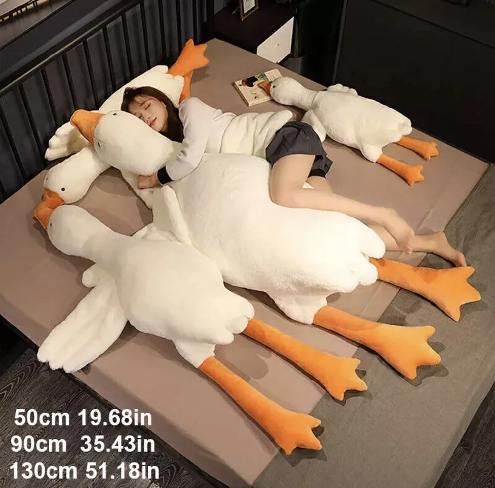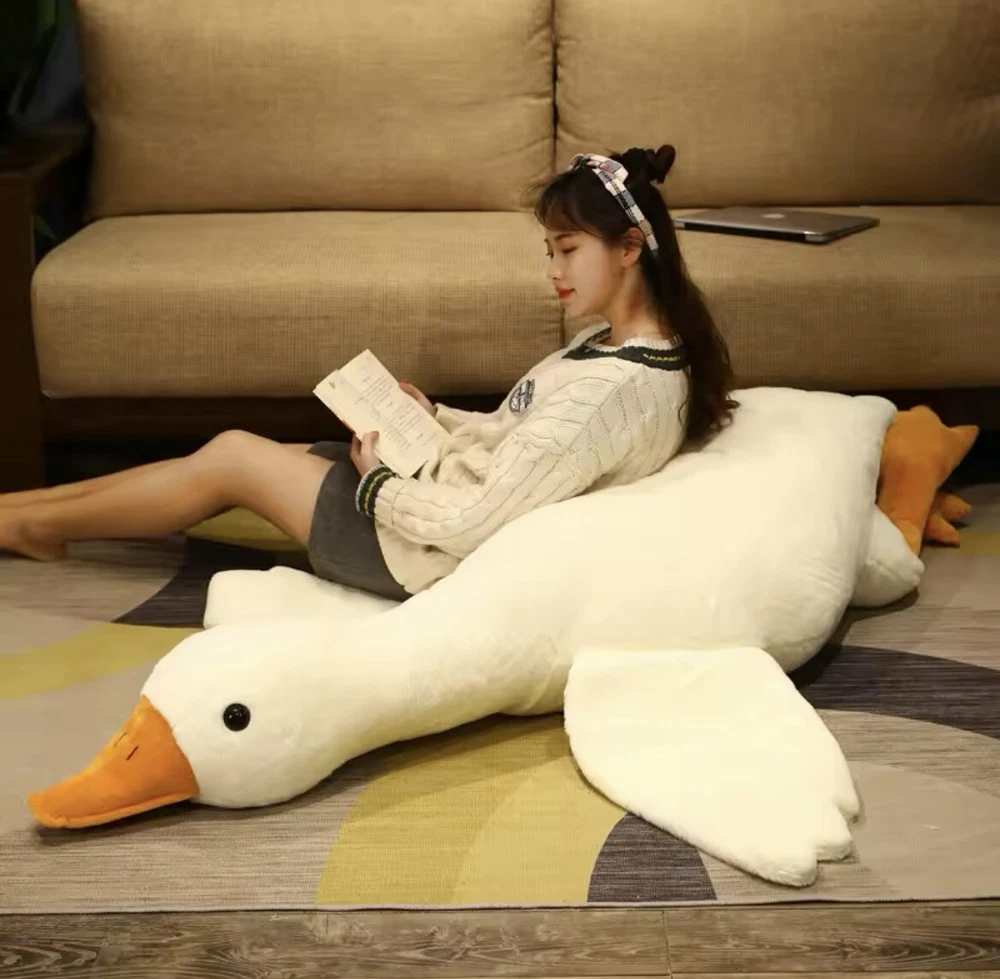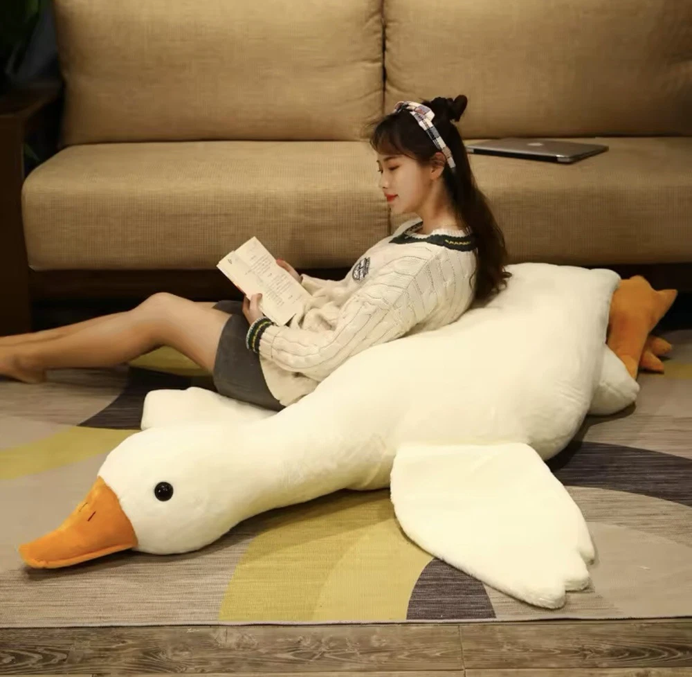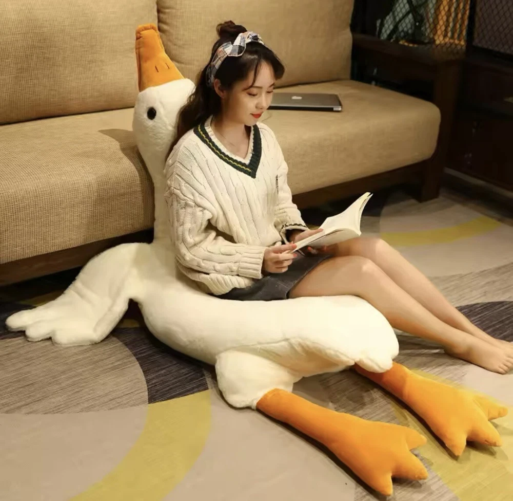This plush toy features a giant white duck/goose design with big wings, making it soft and cuddly. Suitable for children aged 2 years and up, this unisex toy has an animal theme and is made in China. Perfect for snuggling and playtime, this plushie is sure to be a favorite companion for little ones.