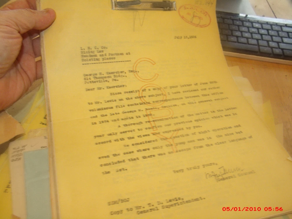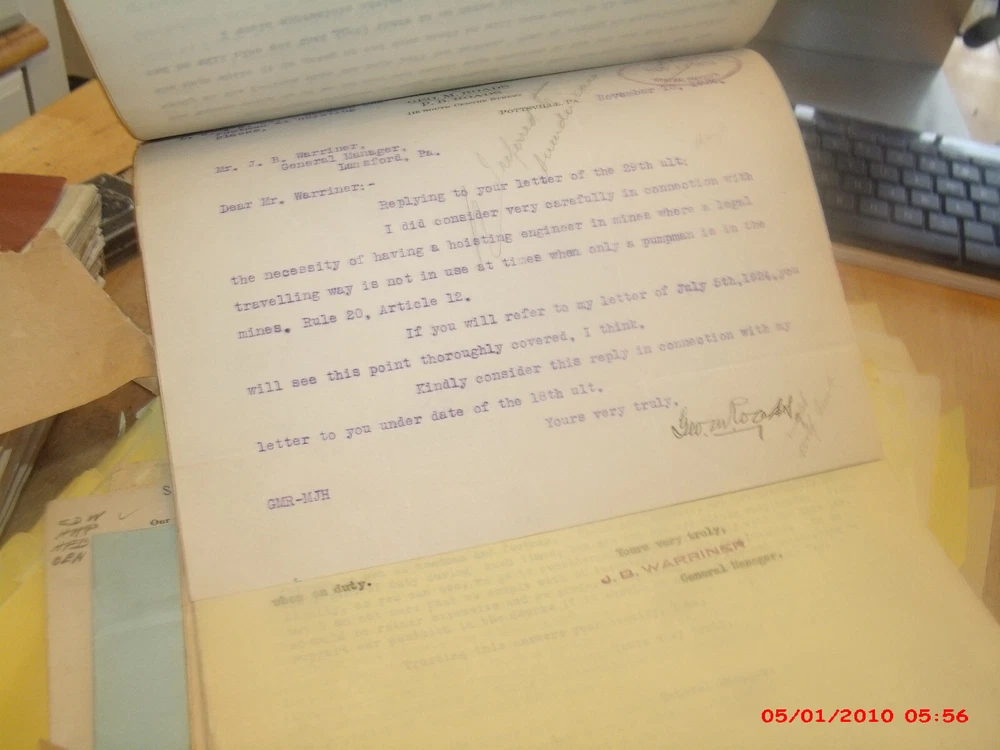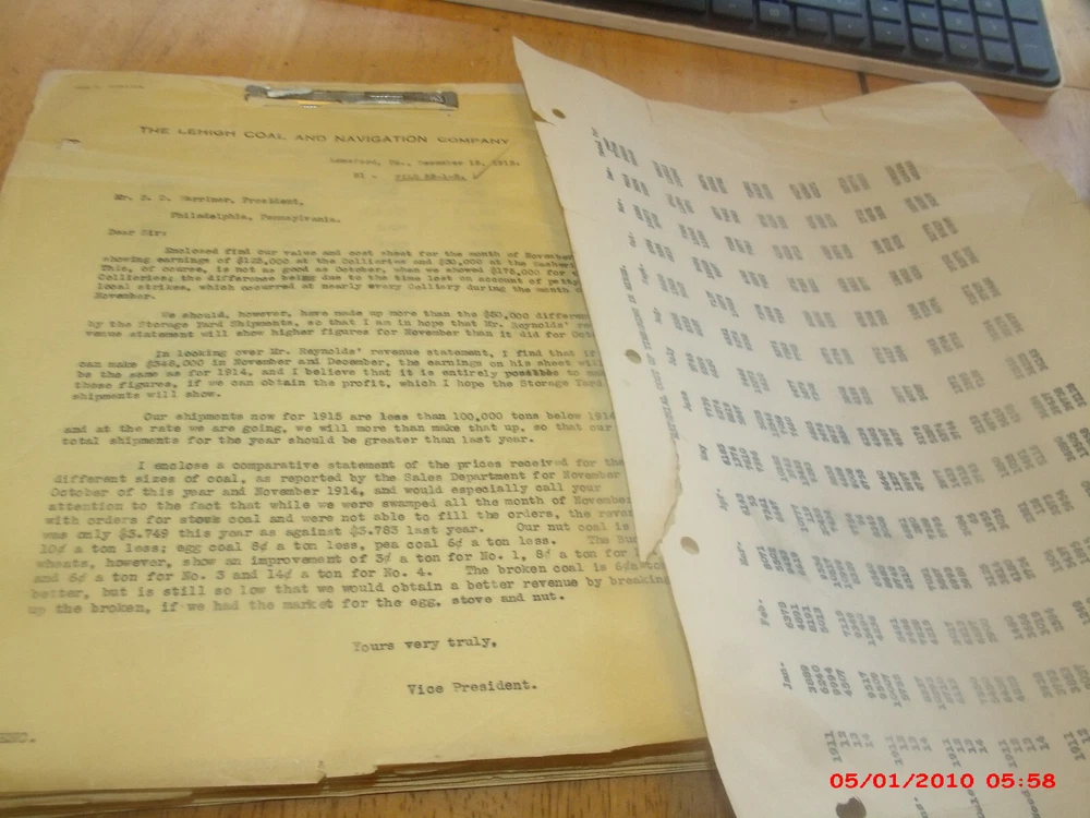 Giant collection of early 1900s to 1940s or so historical mining records,letters,court cases,news items,pay rate tables,mining statistics company records most likely from the desk of GM or CEO MR Warriner. Tons of signed items both carbon printed records and paper in the thousands. Worker names,wages,complaints law papers etc. I see letters from well know figures in the company and lawyers,and other public figures. All kinds of complaint letters and some newspapers related to families getting knocked out of their homes after miners got sick or died.Incredible historical records and documents right from the company executives desks. Many old coal mining towns in Pennsylvania are mentioned as well as the other offices in Philadelphia. Really stuff belonging in a museum. Individual papers usually go for $15.00-$20.00 each and their I believe are thousands of pages in the lot.Contact if interested in learning more. Historical items.