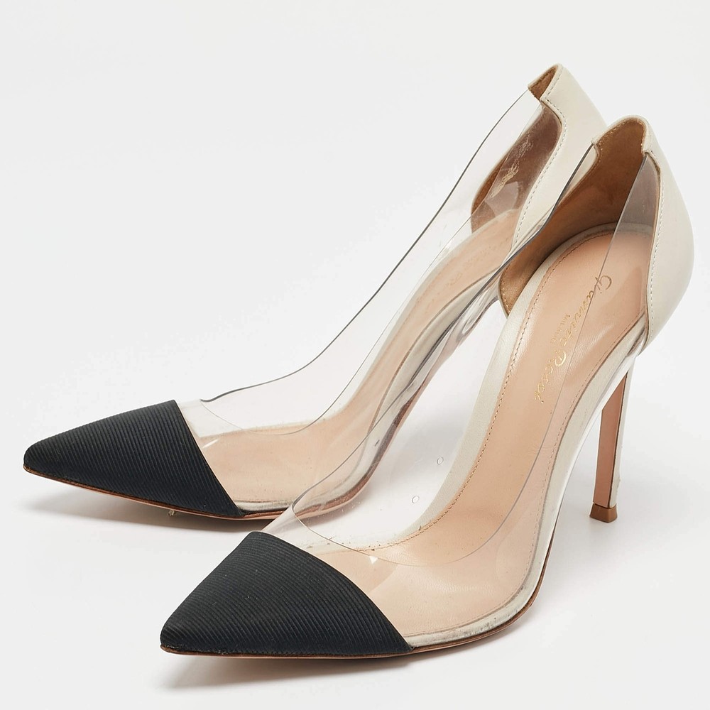 Our eBay Store About Us Contact Us Add to Favorite Sellers Gianvito Rossi BlackWhite Leather and PVC Plexi Pumps Size 39 The black & white shade of this pair of Gianvito Rossi pumps makes it pleasing and appealing. Created from PVC and leather, these shoes are articulately designed and flaunt pointed toes The 9cm heels of this pair will offer you chic and bold steps. Product Details Brand Gianvito Rossi Color Black Includes The Luxury Closet Packaging Outsole Length 23 cm Outsole Width 8 cm Size 39 Certified by The Luxury Closet This item has gone through a detailed authentication process overseen by our experts. We offer a lifetime guarantee of authenticity on all our items. How We Check The in-house team of experts at The Luxury Closet is highly trained to verify the authenticity and the condition of the luxury products. They ensure that only 100% authentic items are put on sale.The evaluation process is unique with its own mix of assessment criteria and differs according to the category. Each item is evaluated based on the following combination of hallmarks, hardware, stitching, symmetry, material, craftsmanship, stamping, codes, hologram stickers, and packaging. Our authenticators also check if the items have been modified or amended (e.g., aftermarket diamonds, replaced batteries, repaired bags, etc.) International Buyers Import duties, taxes and charges are not included in the item price. These charges are the buyers responsibility. Please check with your country’s customs office to determine what these additional cost will be prior to buying.